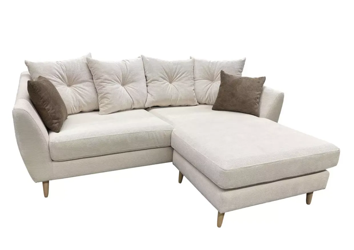 Ein harmonisches Zusammenspiel aus Stoff und Holz prägt das moderne Design des Flash 2-Sitzers mit Anstellhocker. Diese Kombination verleiht dem Möbelstück eine zeitlose Eleganz, die sich nahtlos in verschiedene Wohnstile einfügt. Der Cordbezug in Fjord hellbeige sorgt für eine angenehme Haptik und schafft eine gemütliche Atmosphäre in Ihrem Wohnbereich.
