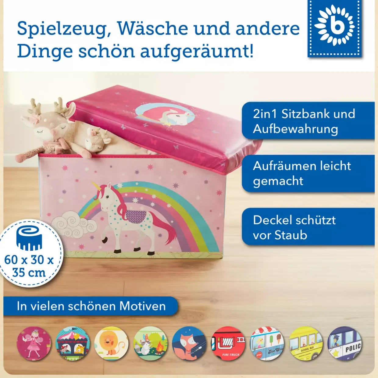 - 1 2in1 Staubox und Sitzbank Einhorn