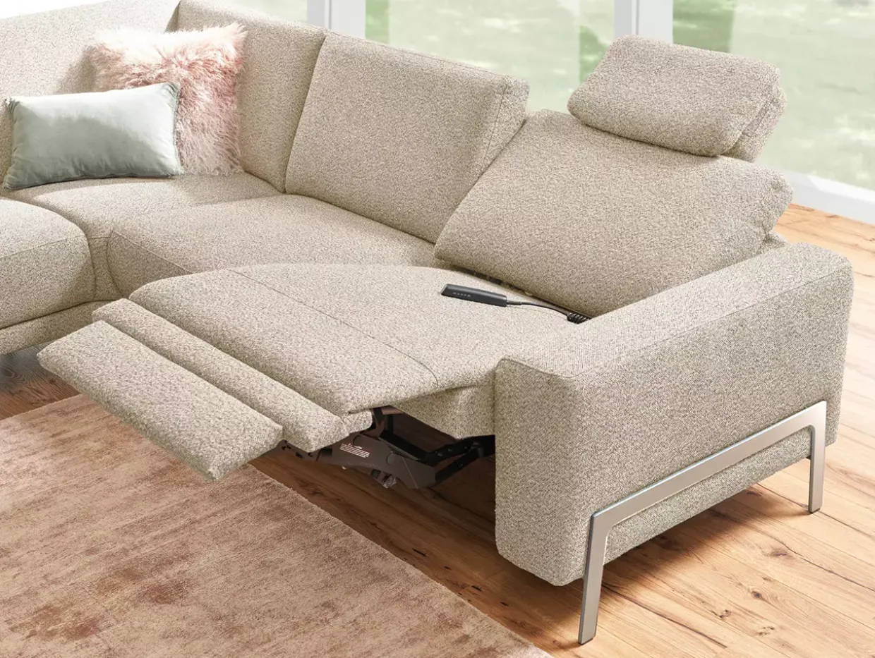 Erleben Sie den Komfort einer motorischen Relaxfunktion, die mit einem Herz-Waage-Beschlag und einer Multifunktionskopfstütze ausgestattet ist. Diese Polstergarnitur besticht nicht nur durch ihre praktische Funktionalität, sondern auch durch die harmonische Kombination aus Stoff und Metall. Die elegante Kufenform der Füße verleiht dem Möbelstück eine schwebende Leichtigkeit, die sich perfekt in ein konventionelles Wohnambiente einfügt.Die Garnitur bietet durch den Tonnentaschenfederkern im Sitzbereich optimalen Sitzkomfort und unterstützt eine entspannte Körperhaltung. Ein besonderer Vorteil ist der integrierte Akku, der sich in etwa 11,5 Stunden über Micro-USB aufladen lässt und Flexibilität in der Nutzung gewährleistet. Der Rückenbezug mit Echtbezug sorgt für ein hochwertiges Erscheinungsbild und eine langlebige Nutzung.Die legere Polsterung lädt zum Verweilen ein und bietet eine ideale Grundlage für entspannende Momente. Beachten Sie bitte, dass der Zusatz-Akku als Tausch-Akku für Ihren bereits bestehenden Akku gedacht ist. Dieses detailreiche Design vereint Funktionalität mit Ästhetik und bietet eine stilvolle Ergänzung für Ihr Zuhause. Pflegen Sie Ihre Polstergarnitur regelmäßig, um ihre Schönheit und Funktionalität langfristig zu erhalten.