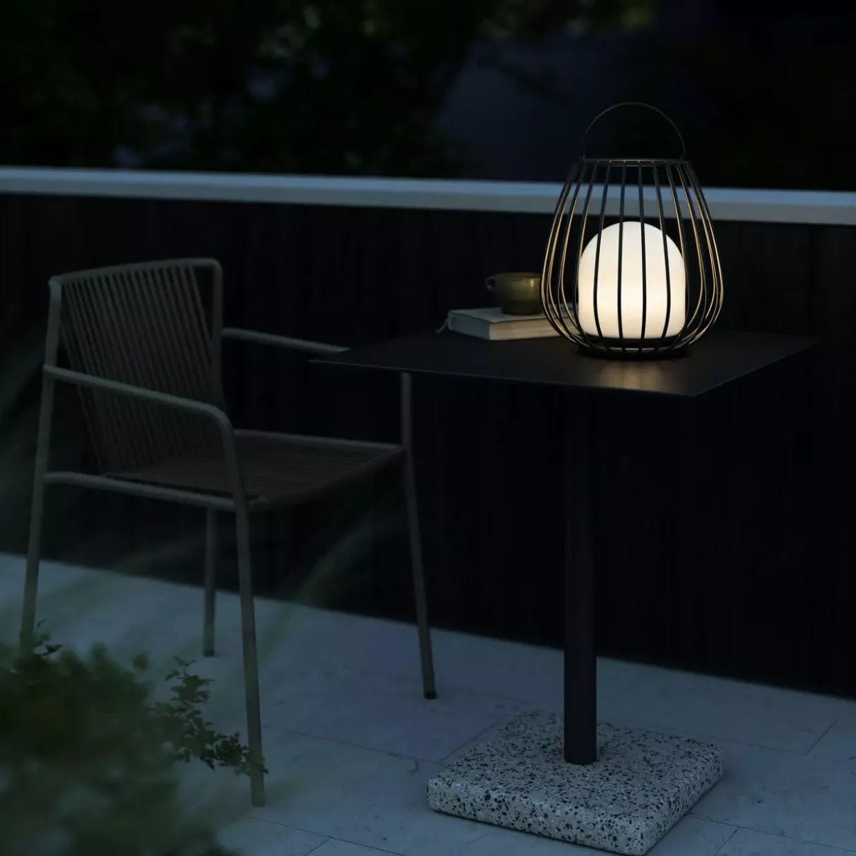 Obwohl nicht dimmbar, bietet die Jim To-Go Leuchte eine konstante und gleichmäßige Ausleuchtung, die gerade in Abendstunden eine gemütliche Atmosphäre schafft. Ihre schlichte Eleganz und Funktionalität machen sie zu einem idealen Begleiter für Gartenpartys oder entspanntes Beisammensein auf der Terrasse.