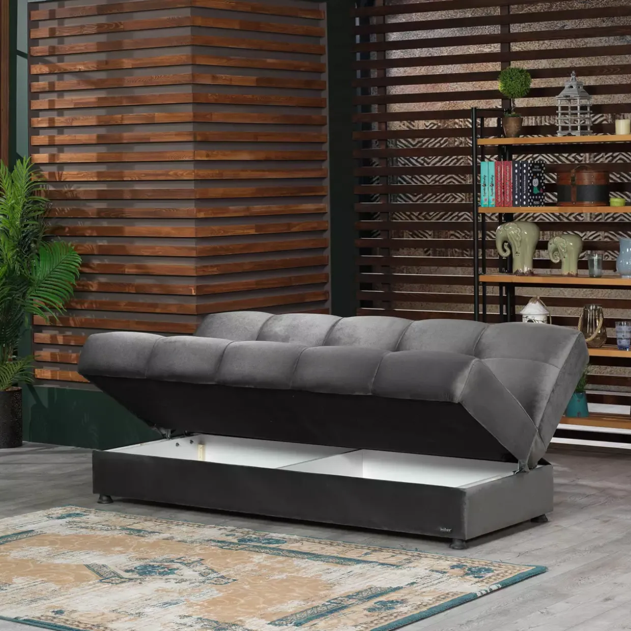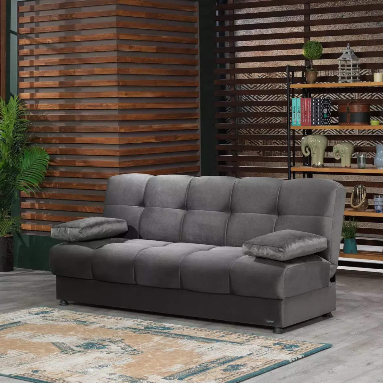 Aus hochwertigen Materialien gefertigt, vereint Alonso Holz, Kunststoff, Textil und Stoff zu einem robusten und dennoch gemütlichen Möbelstück. Die Bonellfederkern-Polsterung sorgt für exzellenten Sitzkomfort, der durch die inkludierten Kissen und die zwei Armlehnenkissen zusätzlich unterstützt wird. Ein weiteres praktisches Highlight ist der Bettkasten, der zusätzlichen Stauraum bietet und Ordnung im Wohnzimmer schafft.