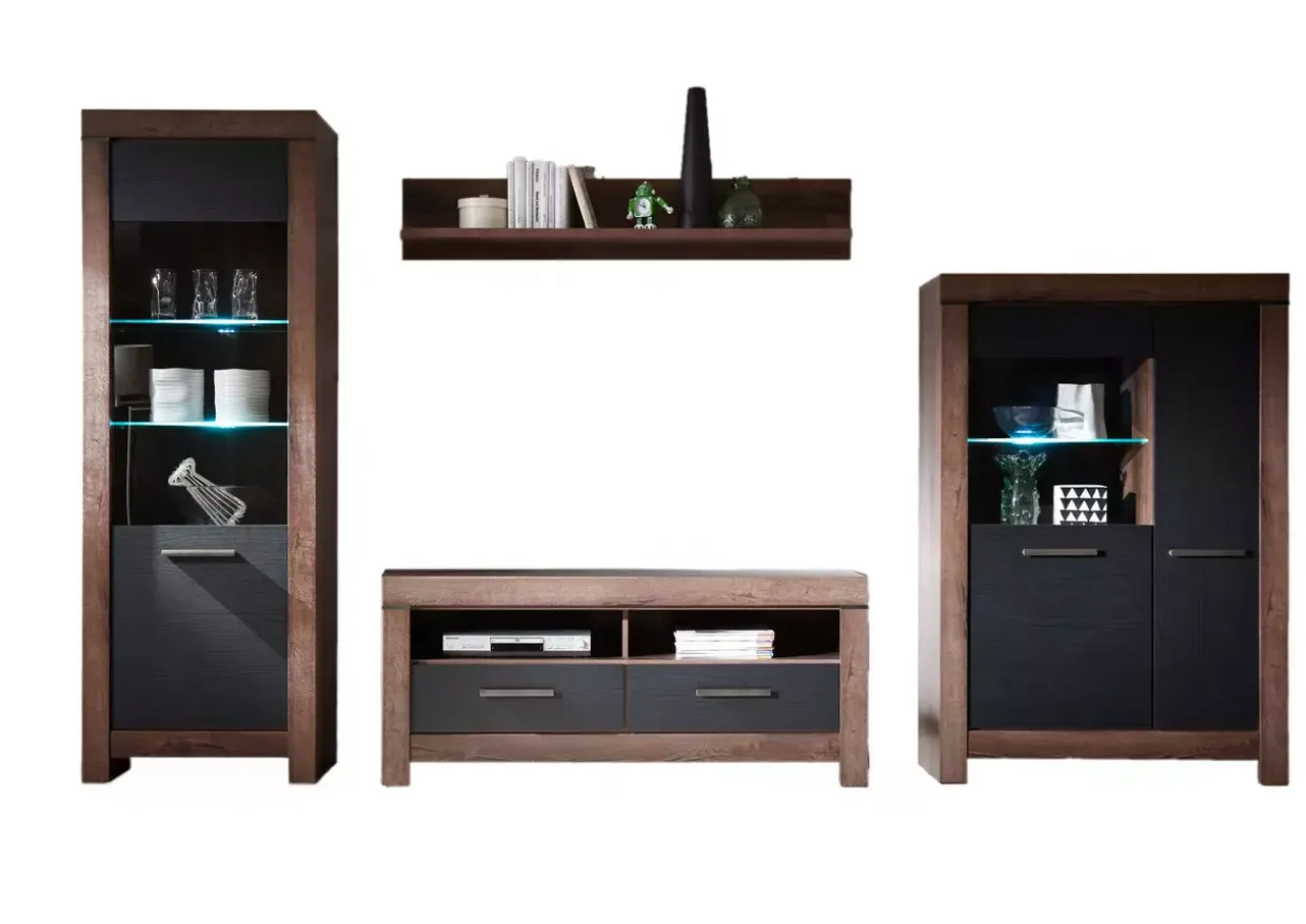 Eiche Canyon verleiht der Balin Anbauwand eine warme und einladende Ausstrahlung, während Schwarze Eiche einen Hauch von Eleganz und Modernität hinzufügt. Beide Farbvarianten bieten eine besondere Möglichkeit, Ihre Wohnräume stilvoll und zeitgemäß zu gestalten. Holz als Material bringt eine natürliche Robustheit und Beständigkeit mit sich und sorgt so für Langlebigkeit und eine angenehme Haptik.Die Anbauwand fügt sich harmonisch in unterschiedliche Einrichtungsstile ein und bietet dabei nicht nur ästhetische, sondern auch funktionale Vorteile. Durch die durchdachte Gestaltung können Sie Ihre Wohnräume optimal nutzen und gleichzeitig einen ordentlichen und aufgeräumten Eindruck hinterlassen. Die Kombination aus Design und Funktionalität macht diese Anbauwand zu einem idealen Element für anspruchsvolle Wohnkonzepte.Holz, das in seiner natürlichen Schönheit erstrahlt, vermittelt ein Gefühl von Geborgenheit und Wärme. Die sorgfältige Verarbeitung der Materialien unterstreicht die hohe Qualität des Produkts. Wenn Sie also auf der Suche nach einem Möbelstück sind, das sowohl optisch als auch praktisch überzeugt, könnte diese Anbauwand die richtige Wahl sein. Lassen Sie sich von der zeitlosen Schönheit und Vielseitigkeit inspirieren und schaffen Sie einen Raum, der Ihre Persönlichkeit widerspiegelt.