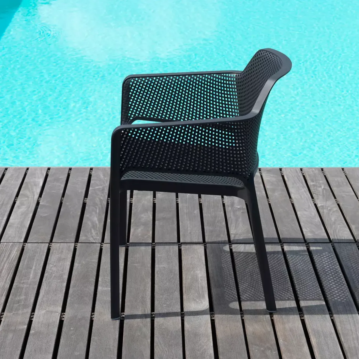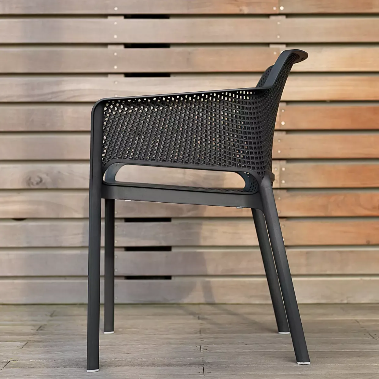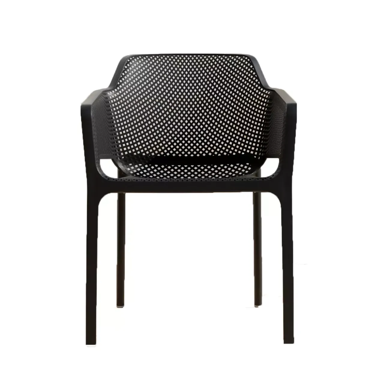Ein Hauch von Modernität prägt den Armlehnenstuhl Net. Mit seiner eleganten Form und der subtilen Farbe Anthrazit fügt er sich nahtlos in zeitgemäße Wohnräume ein. Der Stuhl besteht aus robustem Kunststoff, genauer gesagt aus Polypropylen, das für seine Langlebigkeit und Widerstandsfähigkeit bekannt ist.