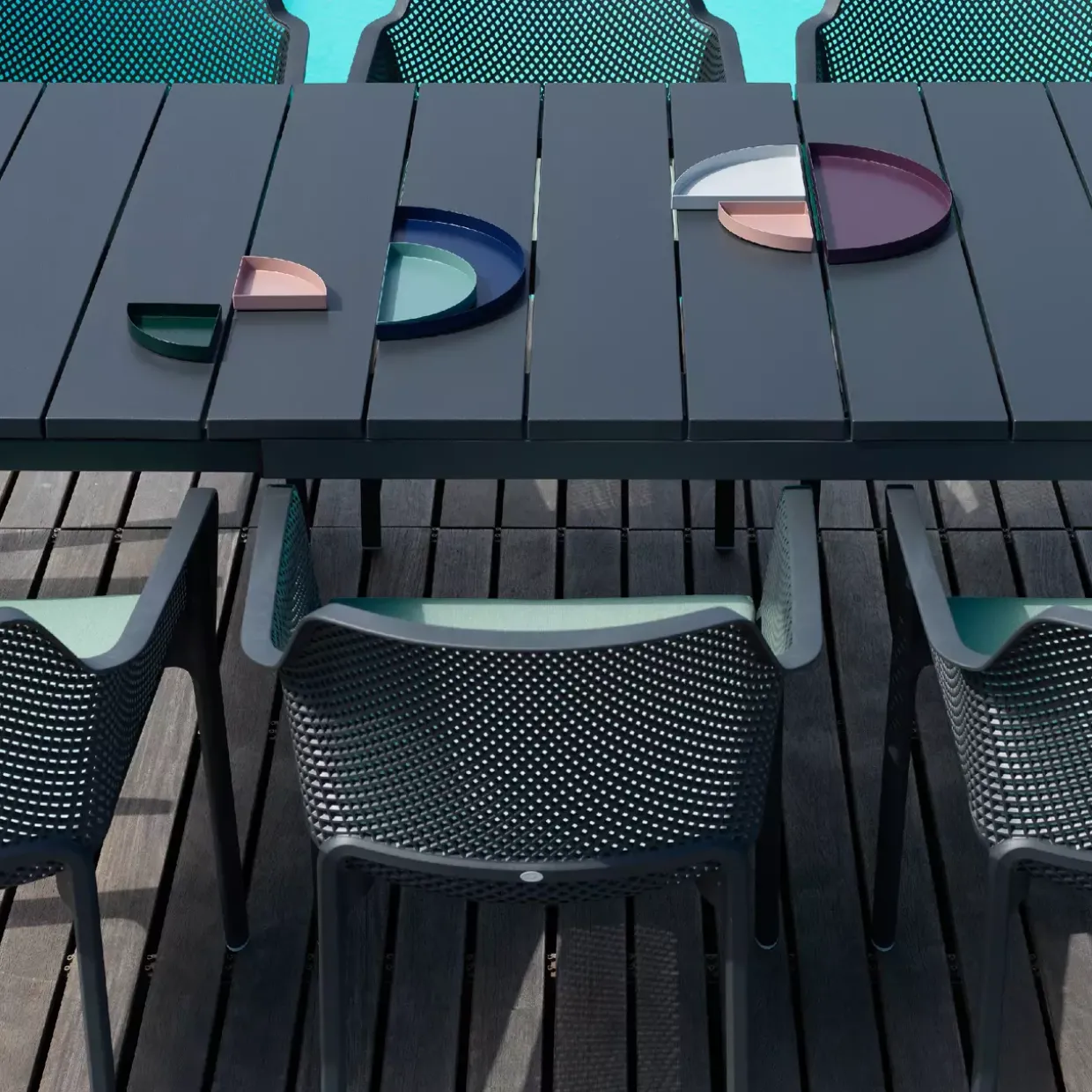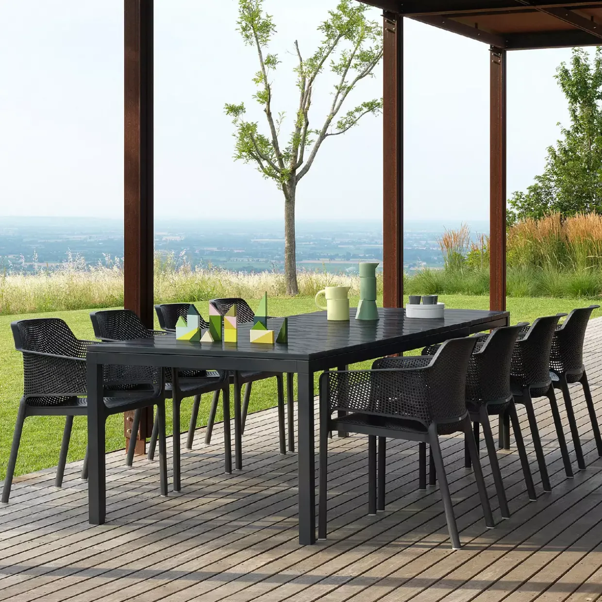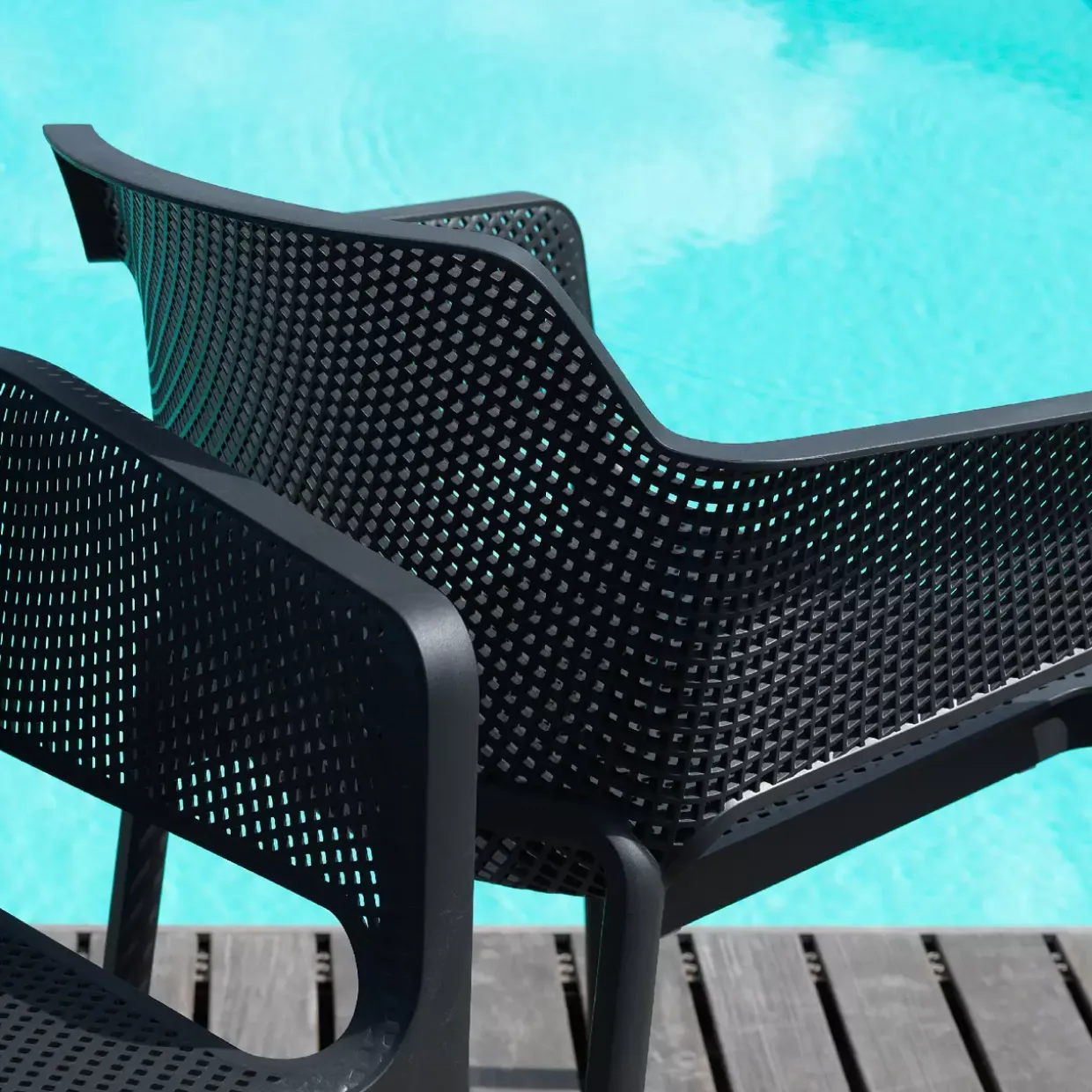 Ein Hauch von Modernität prägt den Armlehnenstuhl Net. Mit seiner eleganten Form und der subtilen Farbe Anthrazit fügt er sich nahtlos in zeitgemäße Wohnräume ein. Der Stuhl besteht aus robustem Kunststoff, genauer gesagt aus Polypropylen, das für seine Langlebigkeit und Widerstandsfähigkeit bekannt ist.