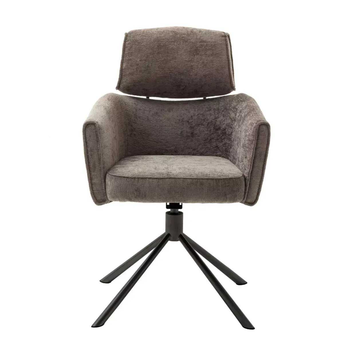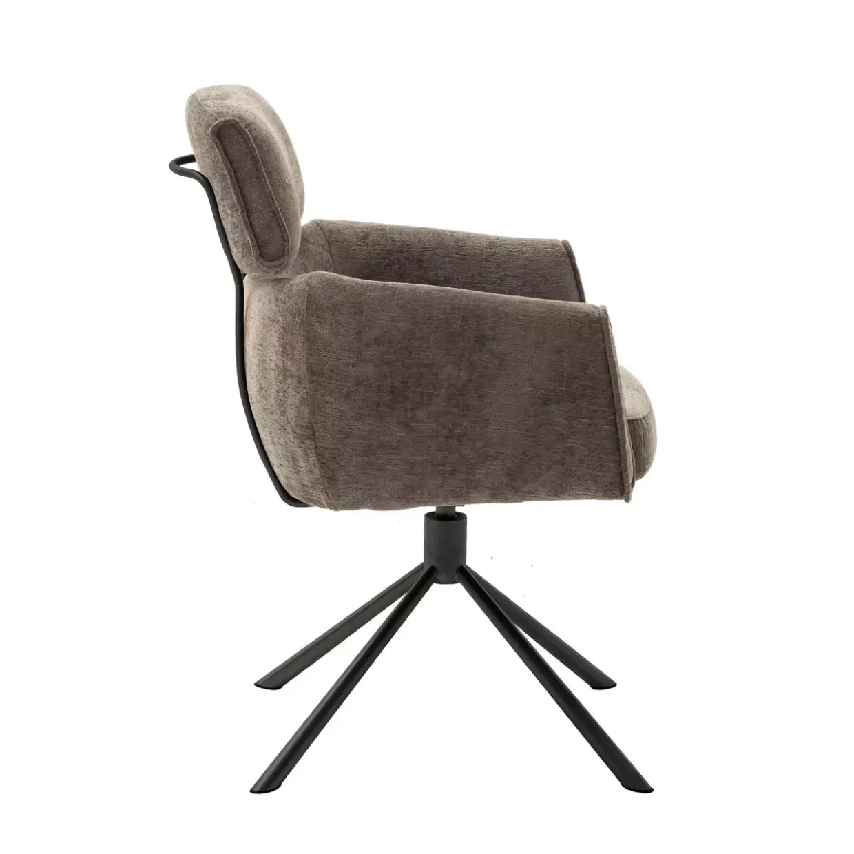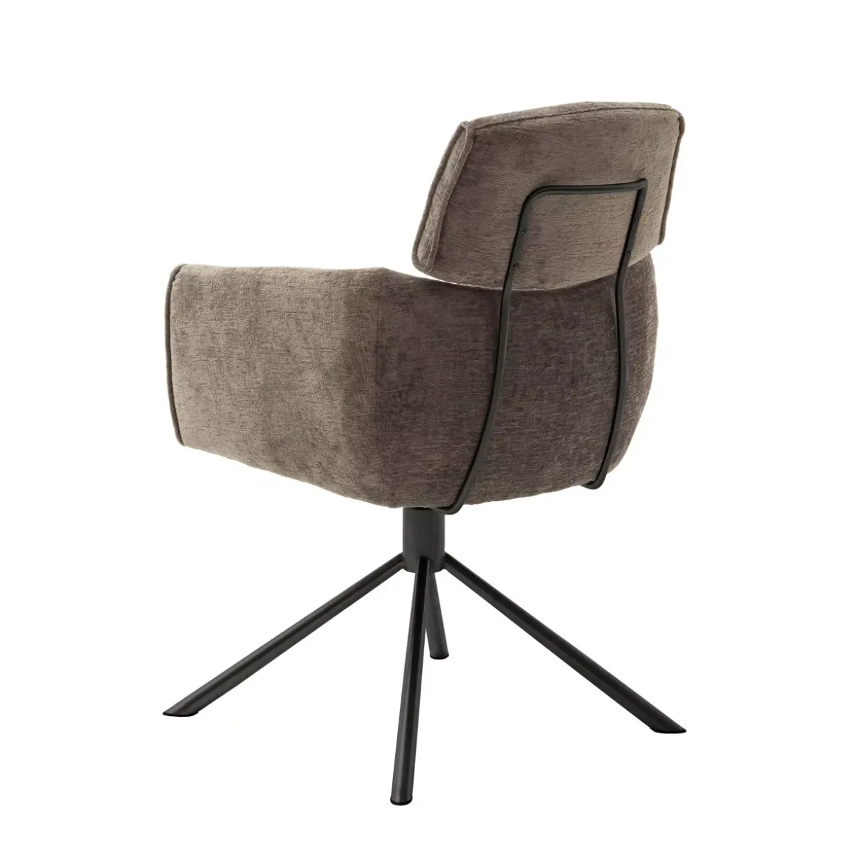 Mit einem eleganten 4-Fußgestell präsentiert sich der Quebec Stuhl mit Armlehnen in einem konventionellen Stil, der zeitlos und ansprechend wirkt. Die Kombination aus hochwertigem Stoff und robustem Metall verleiht diesem Möbelstück eine ansprechende Stabilität und Langlebigkeit. Polyester in Chenille-Optik sorgt für einen luxuriösen Bezug, der sich weich anfühlt und gleichzeitig pflegeleicht ist.Ein besonderes Highlight ist die 360 Grad Drehfunktion, die Flexibilität und Bewegungsfreiheit am Tisch ermöglicht. Der Stuhl ist zudem mit einem praktischen Griff ausgestattet, der es Ihnen erleichtert, ihn mühelos zu verrücken. Die lackierte Oberfläche verleiht dem Stuhl einen dezenten Glanz und schützt das Material vor alltäglichen Abnutzungen.Der Taschenfederkern in der Polsterung sorgt für einen außergewöhnlichen Sitzkomfort und unterstützt Ihren Rücken optimal. Die bewegliche Rückenlehne passt sich Ihrem Körper an und bietet zusätzlichen Halt, sodass Sie auch bei längerem Sitzen entspannt bleiben. Erhältlich in den Farben braun und schwarz matt, fügt sich der Stuhl harmonisch in verschiedene Einrichtungsstile ein.Dieser Stuhl vereint Funktionalität und Ästhetik in perfekter Harmonie und ist eine ausgezeichnete Wahl für alle, die Wert auf Komfort und Stil legen.