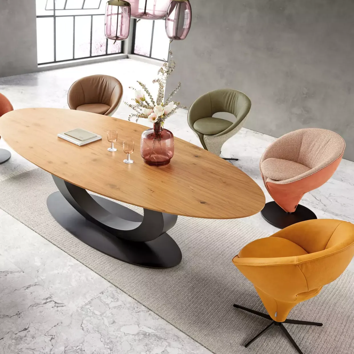 | Color | Bezug innen Leder A-India / Bezug außen Stoff Rain / Gestell schwarz-matt Struktur pulverbeschichtet |