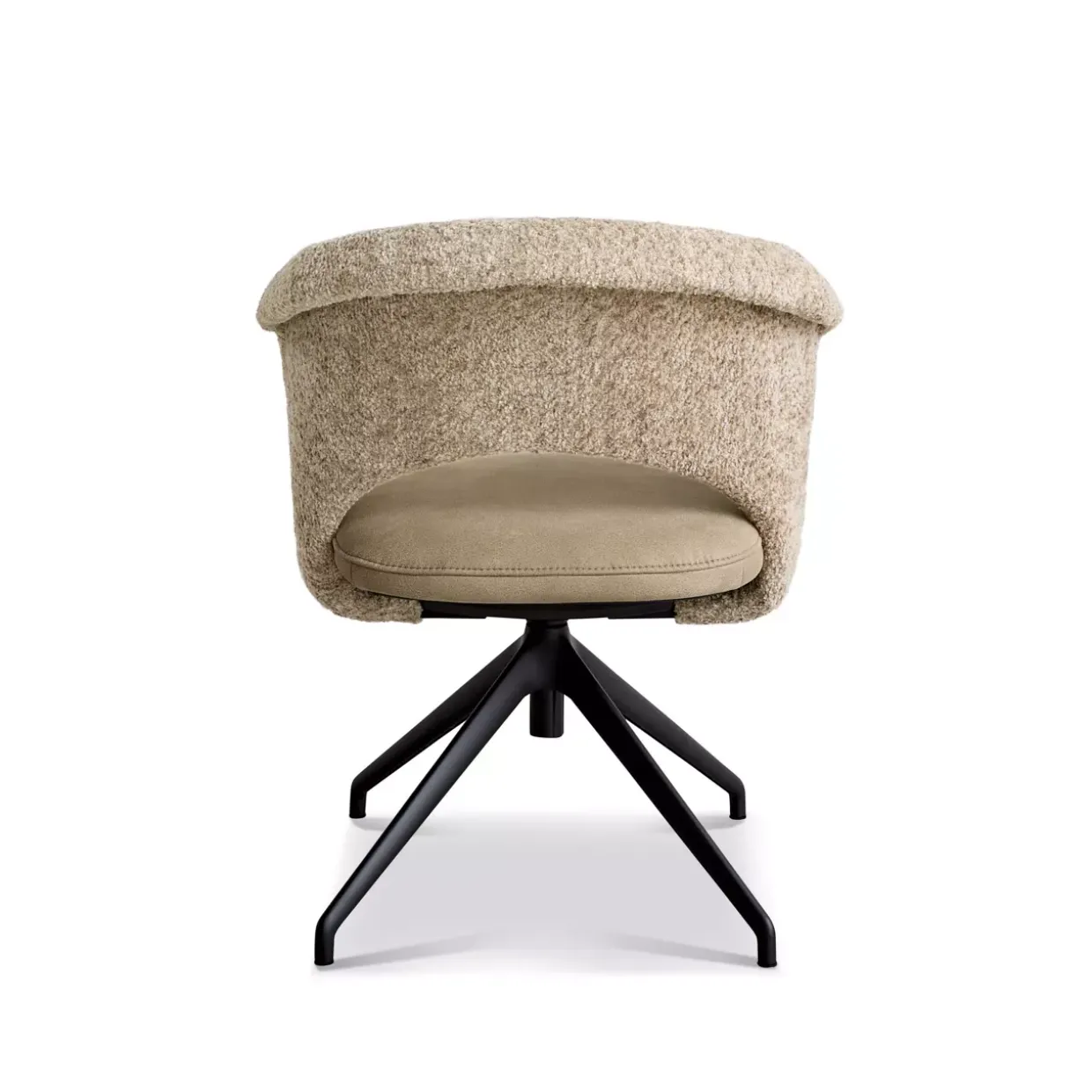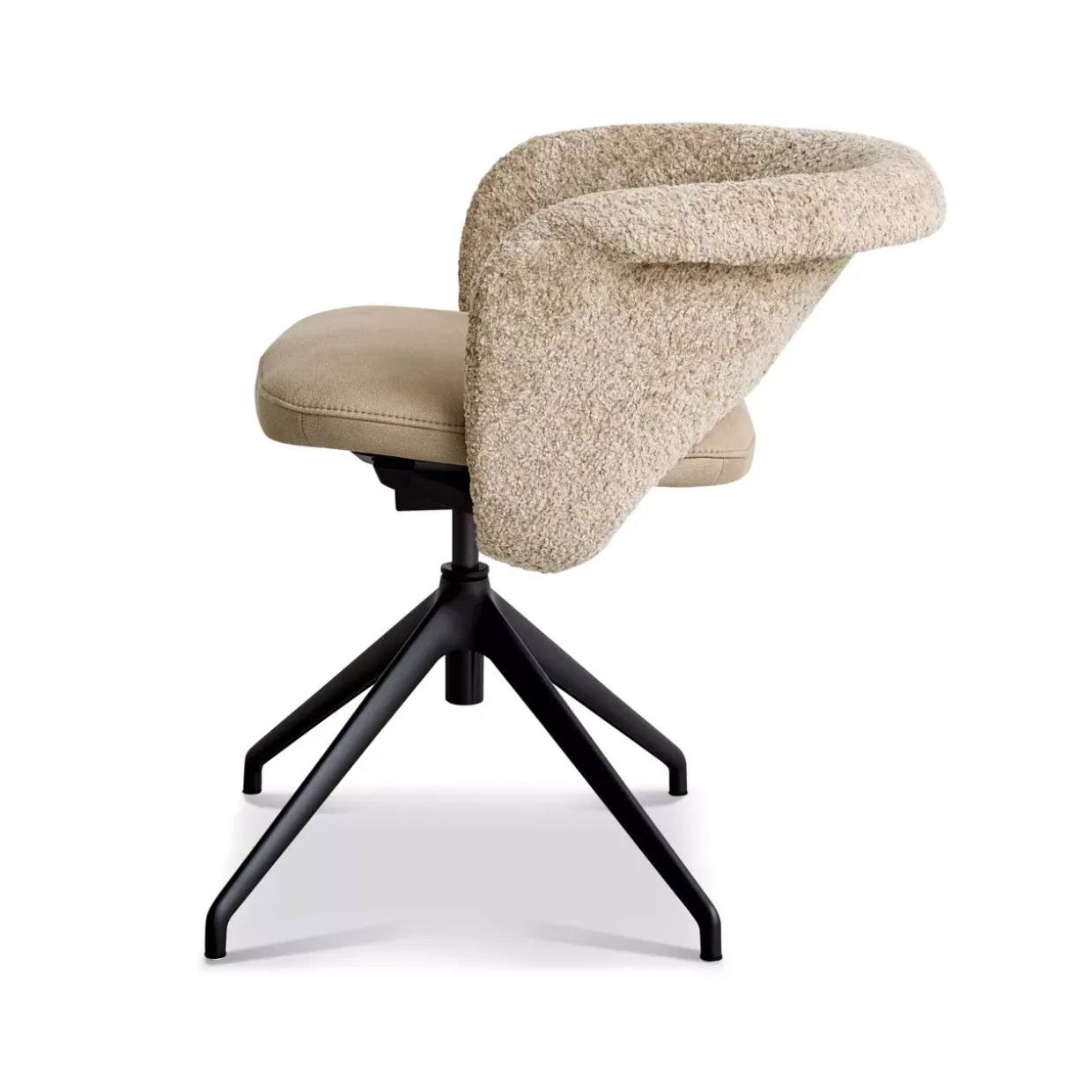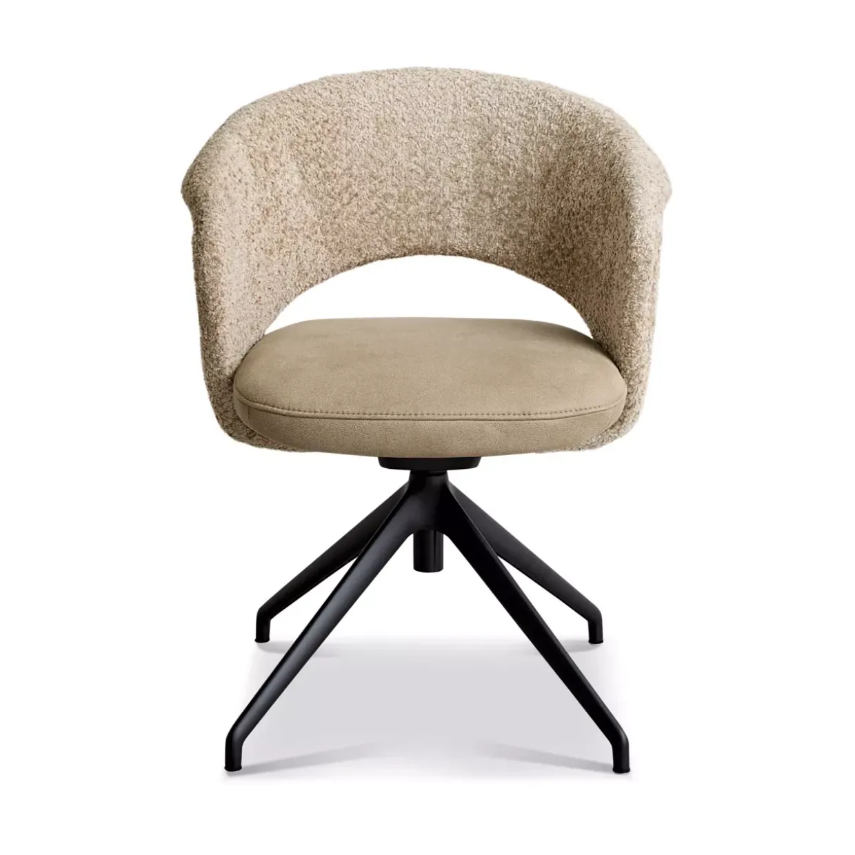 Die legere Polsterung aus Diolenwatte und Formschaum unterstützt optimal und sorgt für ein angenehmes Sitzerlebnis. Durch die Verbindung von Stoff und Metall entsteht ein harmonisches Zusammenspiel, das sowohl optisch als auch funktional überzeugt.