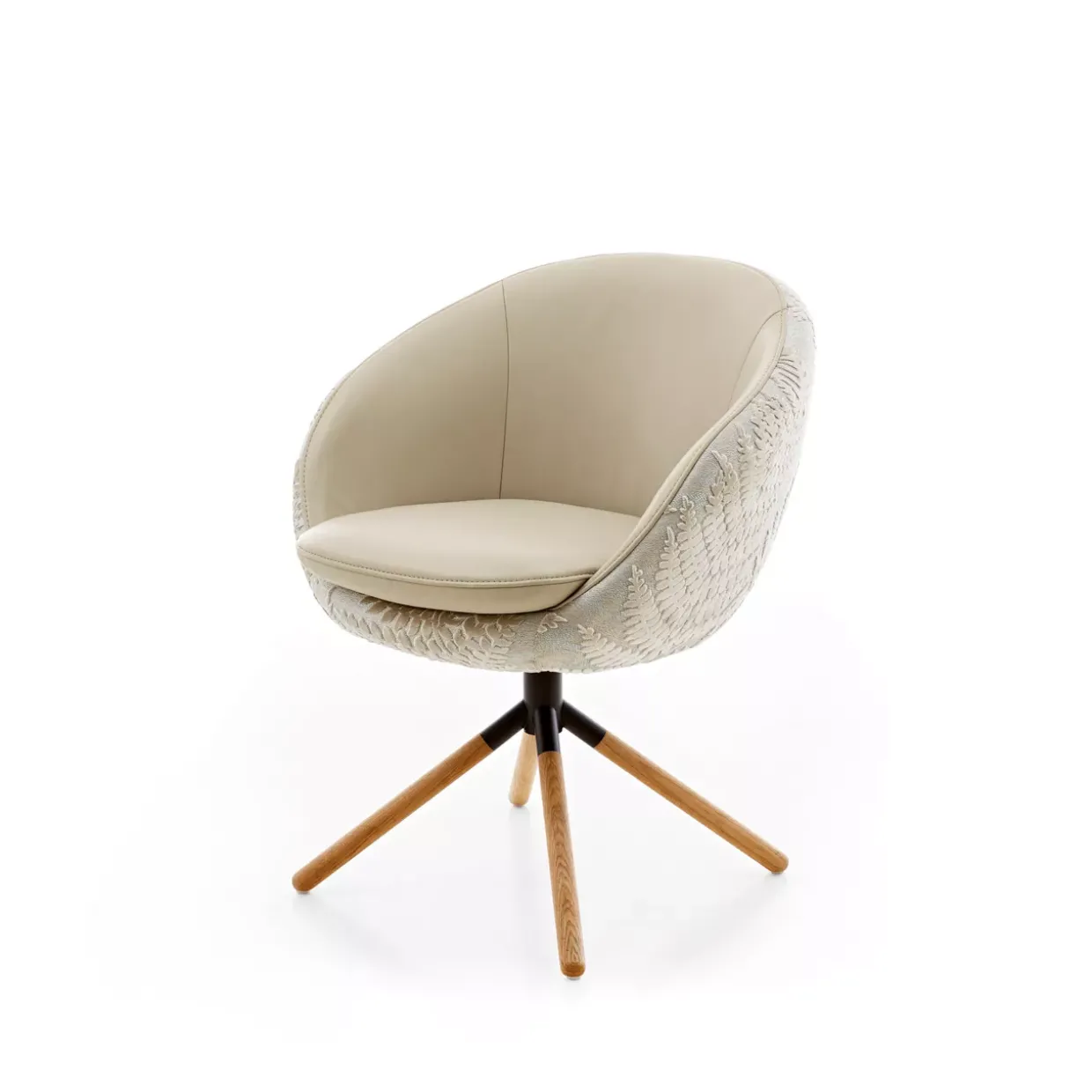 Mit einem drehbaren Mechanismus ausgestattet, ermöglicht der Stuhl eine flexible Nutzung, sei es im Büro oder im heimischen Arbeitszimmer. Das hochwertige Leder bietet nicht nur eine angenehme Haptik, sondern ist auch äußerst langlebig und pflegeleicht, was den Stuhl zu einer nachhaltigen Investition macht. Die sanft geschwungenen Armlehnen laden zum Entspannen ein und unterstreichen gleichzeitig die klare Linienführung des Designs.