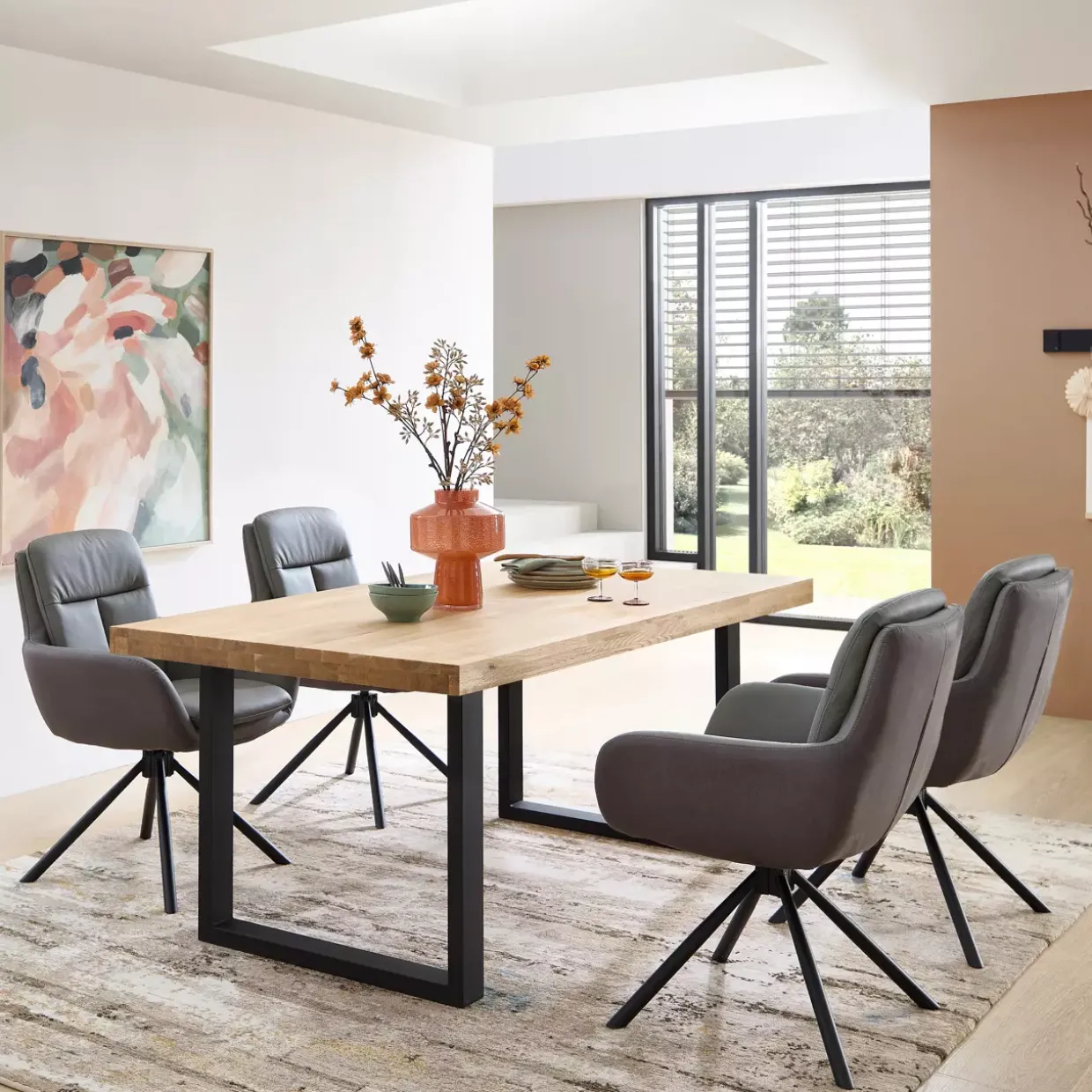 Ein Stativgestell aus robustem Metall, das mit einer pulverbeschichteten Oberfläche veredelt wurde, garantiert Stabilität und Langlebigkeit. Die konventionelle Stilrichtung des Stuhls fügt sich nahtlos in verschiedenste Wohn- und Arbeitsumgebungen ein, ohne aufdringlich zu wirken. Seine dezente Farbgebung in Grau und Schwarz unterstreicht die zeitlose Eleganz und lässt sich mühelos in jedes Interieur integrieren.