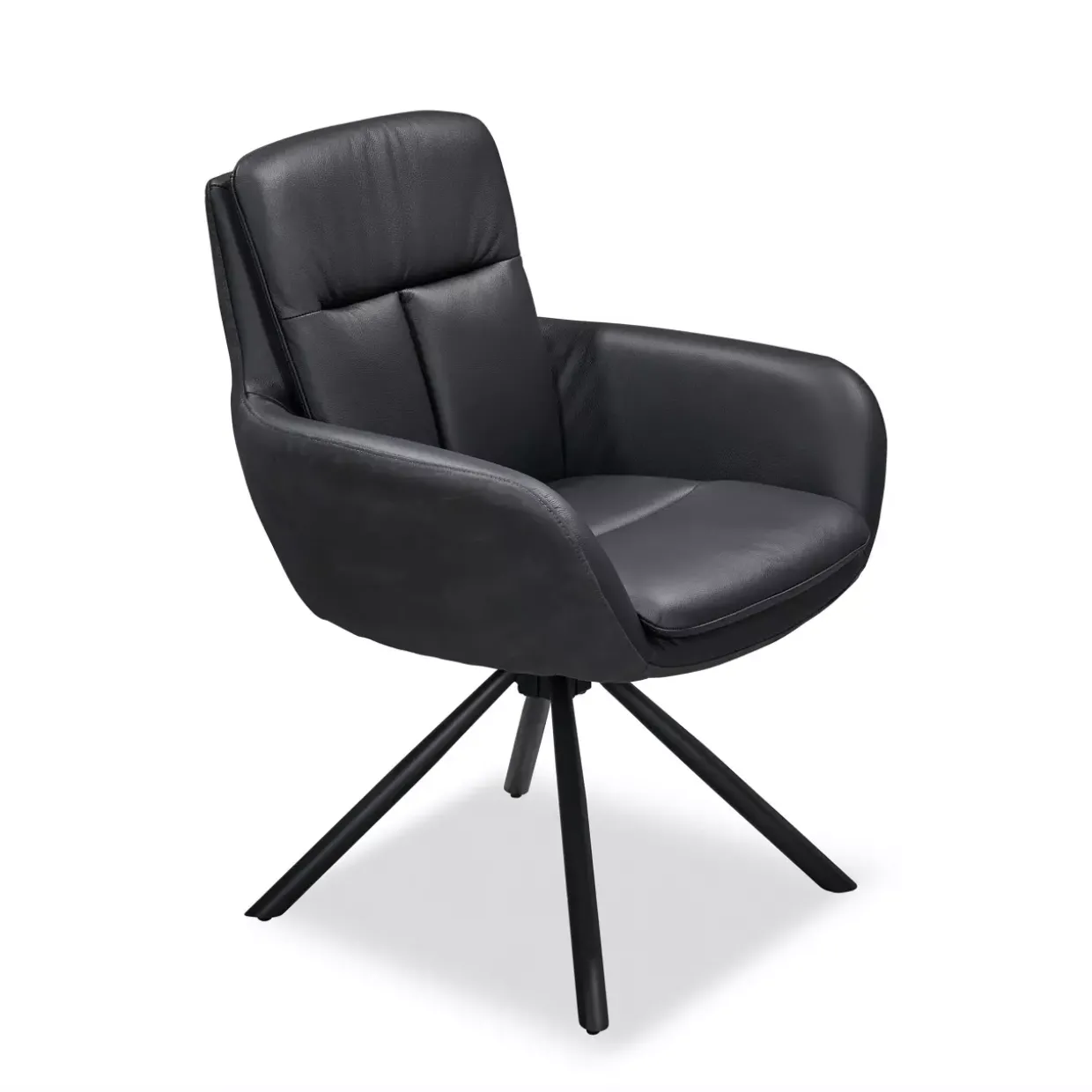 Der schwarze Armlehnstuhl besticht durch seine Funktionalität. Mit der Fähigkeit, sich um 360 Grad zu drehen, bietet er Flexibilität und Komfort in jeder Umgebung. Die Auto-Return-Funktion sorgt dafür, dass der Stuhl immer in seine ursprüngliche Position zurückkehrt, was nicht nur praktisch ist, sondern auch für eine aufgeräumte Optik sorgt.