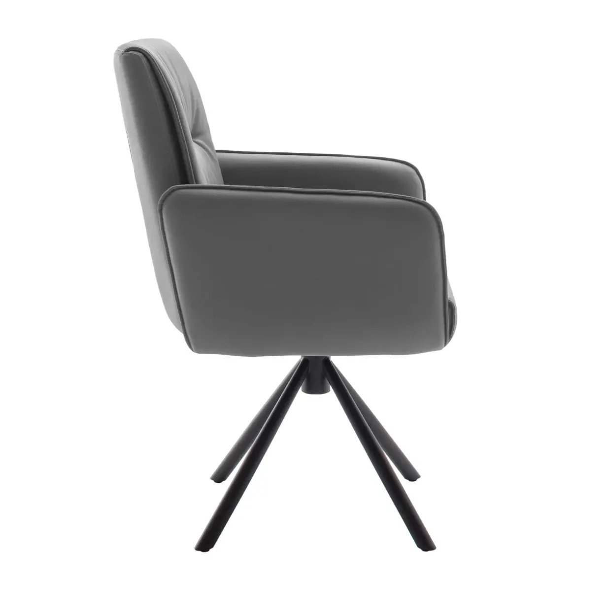 Der Delane Armlehnstuhl überzeugt durch seine beeindruckende Vielseitigkeit. Die 360°-Drehfunktion mit Nivellierung sorgt für Flexibilität und Komfort. Eine moderne Kombination aus Stoff und Metall verleiht dem Stuhl nicht nur Stabilität, sondern auch eine elegante Ästhetik. Die anthrazitfarbene Mikrofaser ist nicht nur pflegeleicht, sondern auch angenehm weich.Ein besonderer Vorteil dieses Stuhls ist die bewegliche Rückenlehne, die sich optimal an Ihre Sitzhaltung anpasst und so den Komfort erhöht. Die hochwertige Taschenfederkernpolsterung bietet eine ausgezeichnete Unterstützung, die bei längerem Sitzen besonders geschätzt wird. Das Stativgestell aus robustem Metall verleiht dem Stuhl nicht nur eine moderne Optik, sondern sorgt auch für einen stabilen Stand. Diese Eigenschaften machen den Stuhl zu einem idealen Begleiter sowohl in Wohnräumen als auch in Büros. Eine stilvolle Ergänzung für jeden Raum, die durch Funktionalität und Design besticht.Durch die klassische Farbgebung in schwarz matt lässt sich der Stuhl vielseitig kombinieren und harmoniert mit unterschiedlichen Einrichtungsstilen. Der Delane Armlehnstuhl bietet eine hervorragende Mischung aus Funktion und Ästhetik und ist eine ausgezeichnete Wahl für alle, die Wert auf Qualität und Komfort legen.