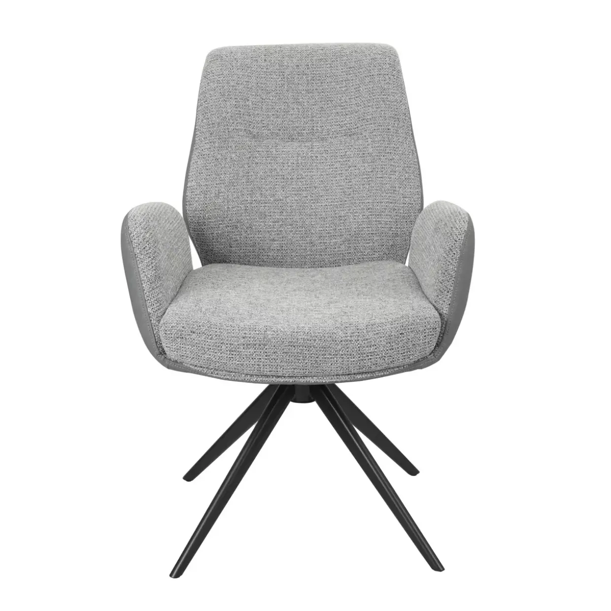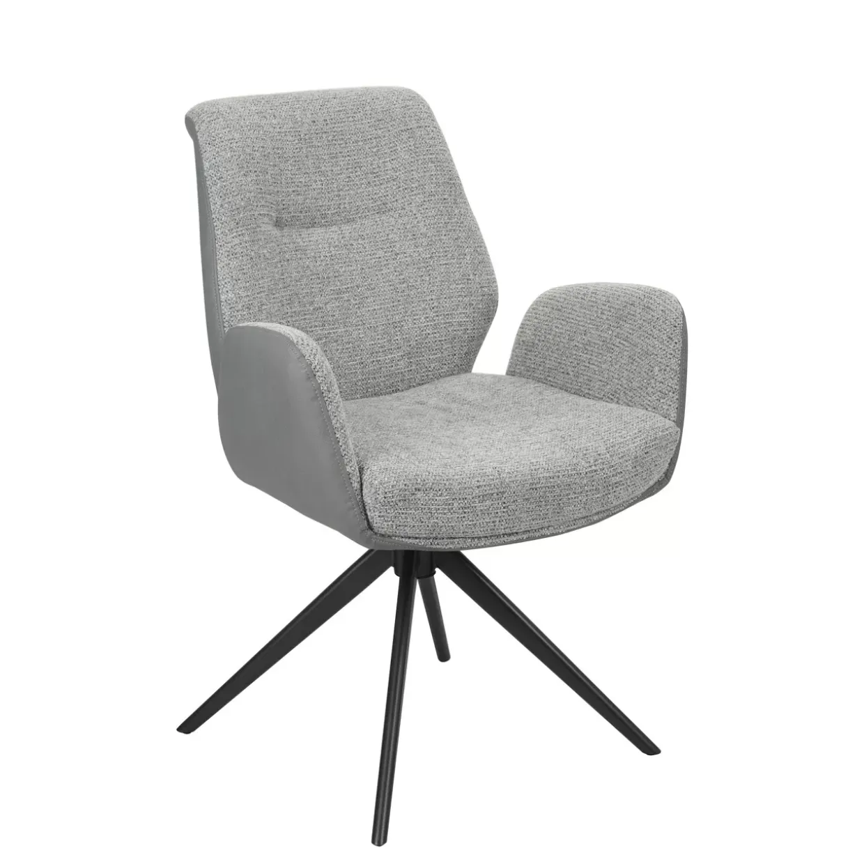 Ein Hauch von Modernität prägt den Fenra Armlehnstuhl, der mit seinem eleganten Design und der zeitlosen Farbe Grau beeindruckt. Gefertigt aus einer harmonischen Kombination von hochwertigem Leder und weichem Stoff, bietet dieser Stuhl eine ansprechende Haptik und Langlebigkeit. Die Materialwahl sorgt nicht nur für eine ästhetische Optik, sondern auch für einen hohen Sitzkomfort, der Entspannung und Stil vereint.Das 4-Fußgestell verleiht dem Stuhl eine stabile Basis, die Zuverlässigkeit und Balance garantiert. Durch die 360°-Schwenkfunktion wird der Armlehnstuhl zu einem flexiblen Begleiter im Alltag, der sich Ihren Bedürfnissen anpasst und Bewegungsfreiheit ermöglicht. Diese Funktion eröffnet vielseitige Einsatzmöglichkeiten, sei es im Wohnbereich, im Büro oder im Besprechungsraum.Der moderne Stil des Fenra Armlehnstuhls fügt sich nahtlos in verschiedene Einrichtungsstile ein und wird zu einem Highlight in jedem Raum. Seine klaren Linien und die dezente Farbgebung machen ihn zu einem Möbelstück, das zeitlose Eleganz ausstrahlt. Der Fenra Armlehnstuhl ist mehr als nur ein Sitzmöbel – er ist eine Einladung zum Verweilen und Genießen, die Raffinesse und Funktionalität in Einklang bringt.