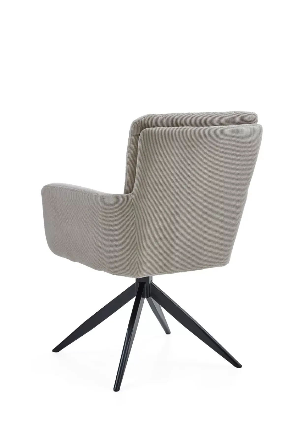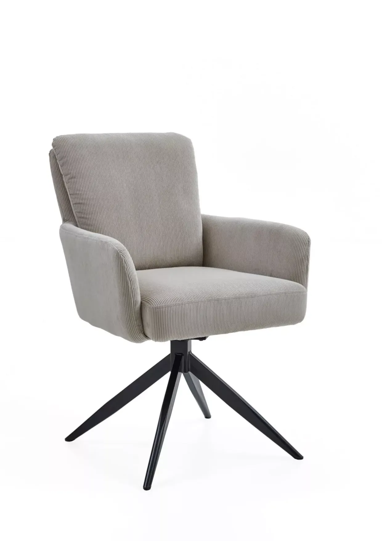 Ein Polsterrücken sorgt für außergewöhnlichen Komfort in diesem modernen Armlehnstuhl. Die Kombination aus Stoff und Metall verleiht dem Modell Lomo eine zeitgemäße Eleganz, die in jedem Raum zu einem Blickfang wird. Besonders hervorzuheben ist die Funktionalität: Der Stuhl ist um 180° drehbar und verfügt über eine praktische Rückholfunktion, die für Flexibilität und Bequemlichkeit sorgt.