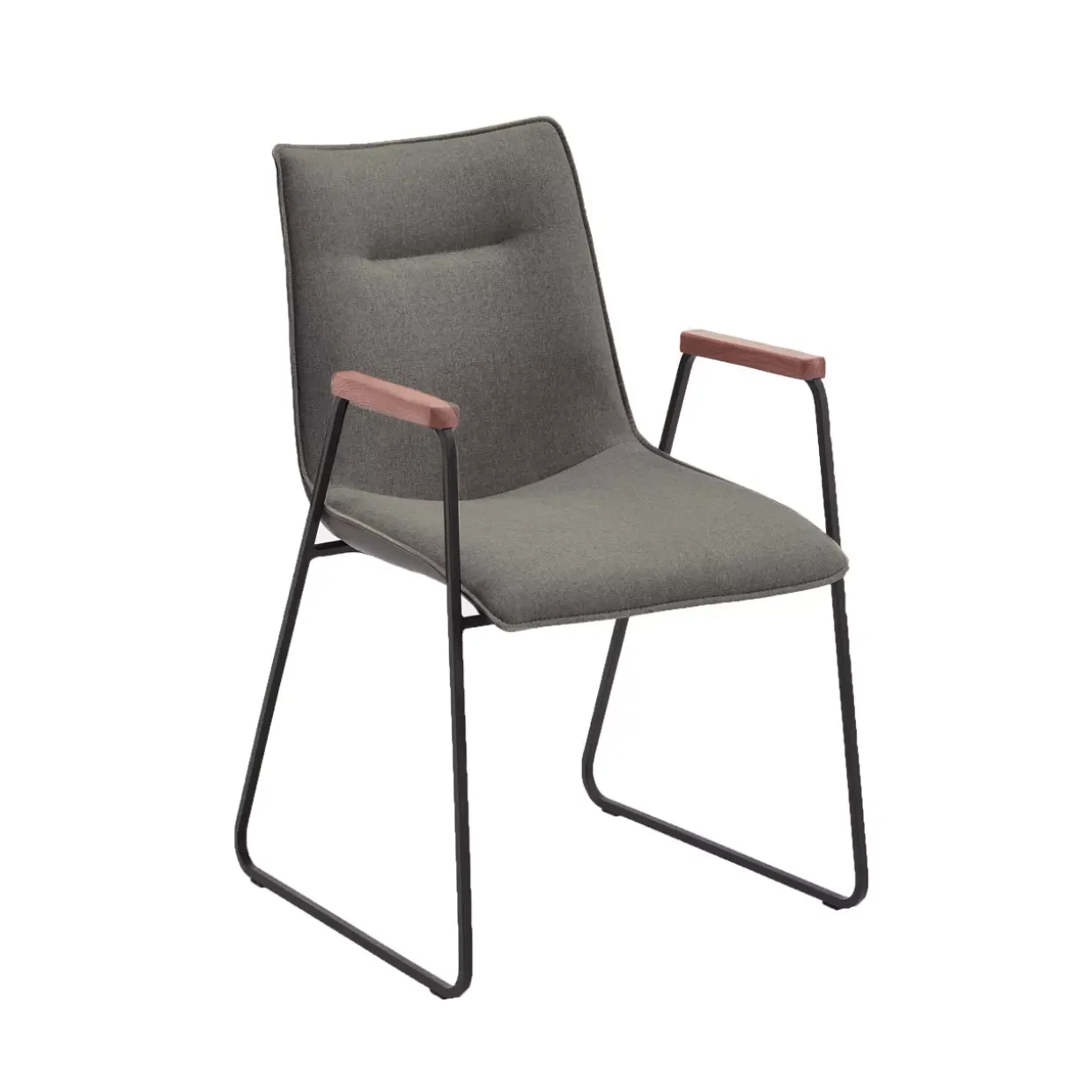 Graphit, grau und Eisen schwarz verschmelzen in einem harmonischen Zusammenspiel der Farben und verleihen dem Namur Armlehnstuhl sein modernes Flair. Die Kombination aus Stoff und Metall unterstreicht das zeitgenössische Design und sorgt für Langlebigkeit und Stabilität. Mit einer Sitzschale, die als Polsterschale gestaltet ist, bietet der Stuhl einen hohen Komfort, ideal für lange Abende am Esstisch oder im Arbeitszimmer.