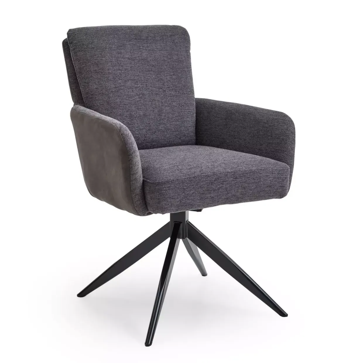 Anthrazitfarbene Eleganz trifft auf moderne Ästhetik im Rico Armlehnstuhl. Der stilvolle Stuhl vereint zeitgemäßes Design mit funktionalen Eigenschaften, die Ihren Wohnraum bereichern. Sein Stativgestell aus robustem Eisen sorgt nicht nur für Stabilität, sondern verleiht dem Stuhl auch eine industrielle Note. Die Kombination aus hochwertigem Stoff und Metall macht ihn zu einem langlebigen Begleiter.