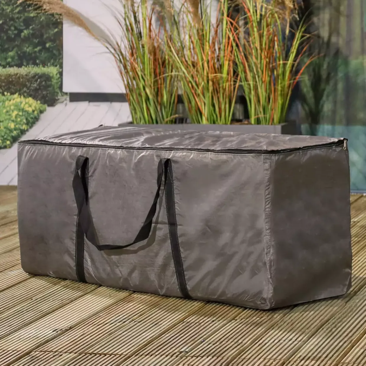 Praktikabilität trifft auf Stil: Die graue Farbgebung der Tasche fügt sich harmonisch in jede Umgebung ein und bietet eine dezente, aber elegante Lösung zur Aufbewahrung. Polypropylen, ein vielseitiges Textil, sorgt dafür, dass die Tasche leicht zu reinigen ist und sie auch bei häufiger Nutzung in Form bleibt.