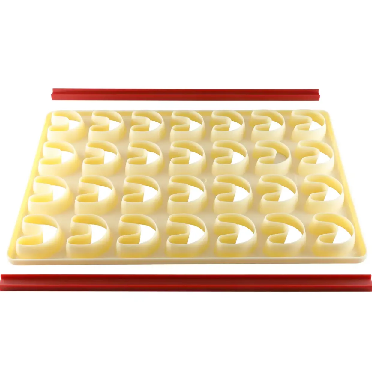 Hellbraun schimmert das hochwertige Material dieser Ausstechschablone, die mit ihrer konventionellen Formgebung überzeugt. Ob für den passionierten Hobbybäcker oder den professionellen Konditor, die Schablone bietet eine praktische Lösung für die Herstellung von 28 gleichmäßigen Formen.