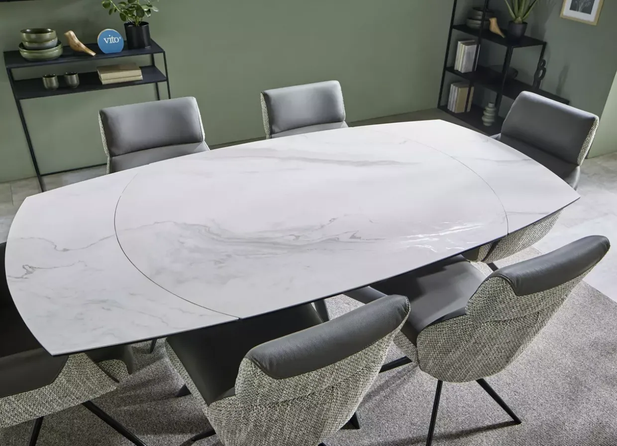Keramik als Material bietet zudem zahlreiche Vorteile: Es ist pflegeleicht, widerstandsfähig und langlebig. Damit eignet sich der Tisch sowohl für den täglichen Gebrauch als auch für besondere Gelegenheiten. Der Fenra Ausziehtisch verbindet Funktionalität mit ästhetischem Design und schafft so einen Mittelpunkt in Ihrem Wohn- oder Essbereich. Lassen Sie sich von der Vielseitigkeit und dem modernen Charme dieses Möbels inspirieren. Ob im Alltag oder bei besonderen Anlässen – dieser Tisch wird Ihnen stets treue Dienste erweisen.