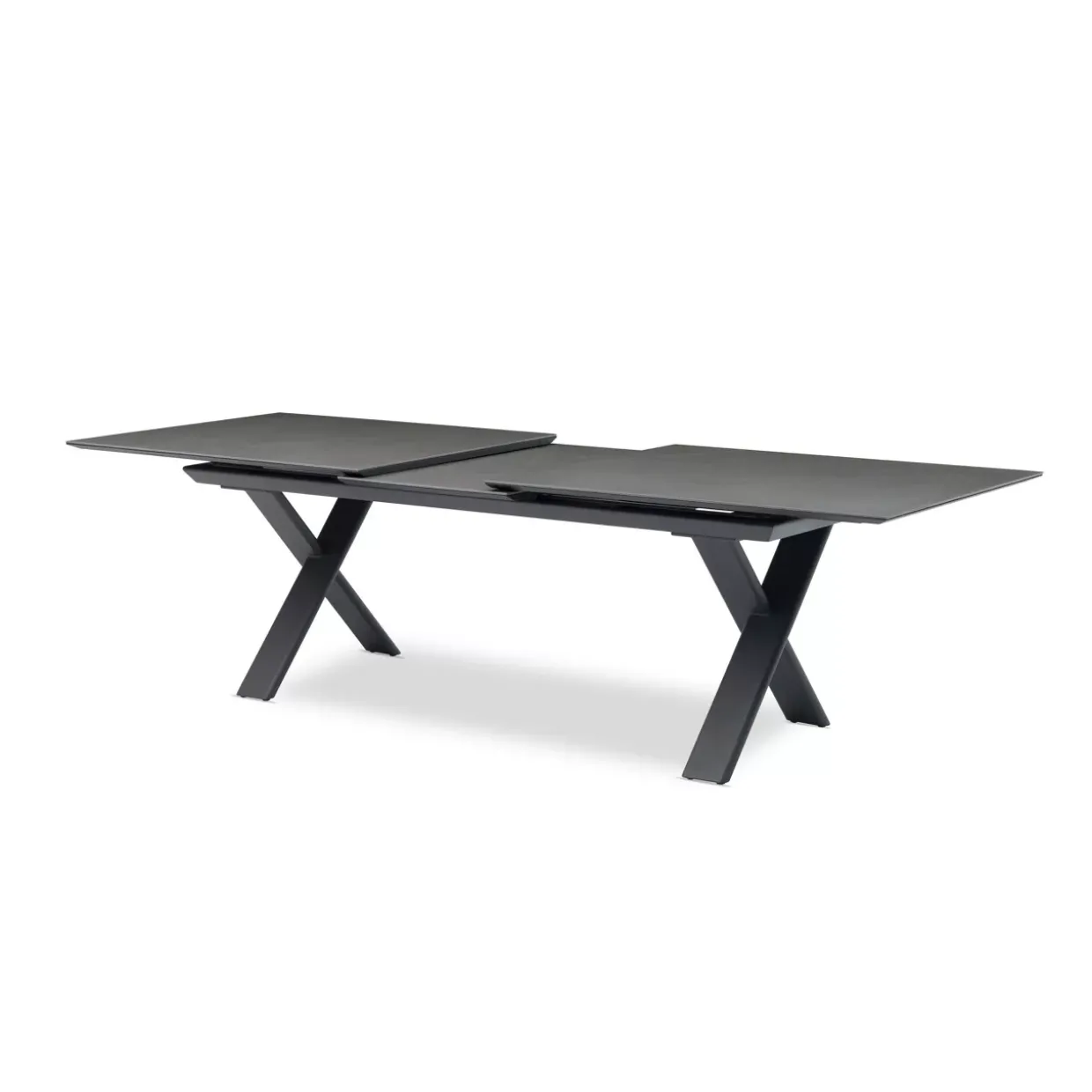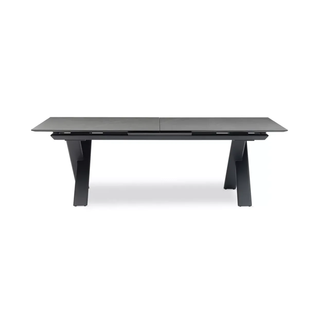 Graphite als Farbe verleiht dem Levare Ausziehtisch eine moderne und elegante Ausstrahlung, die sich perfekt in ein Loft-Interieur einfügt. Die Kombination aus Metall und Keramik sorgt nicht nur für eine ansprechende Optik, sondern auch für Langlebigkeit und Robustheit. So wird der Tisch zum verlässlichen Begleiter im Alltag und zu besonderen Anlässen.Ein weiteres Highlight ist die markante Kreuzfuß-Konstruktion, die dem Tisch Stabilität und einen einzigartigen Charakter verleiht. Diese Fußform harmoniert hervorragend mit dem urbanen Stil eines Lofts und verleiht dem Raum eine dynamische Note. Das Zusammenspiel der Materialien und Formen macht diesen Tisch zu einem echten Blickfang in jedem Raum.Der Ausziehtisch bietet zudem Flexibilität für unterschiedliche Anlässe. Ob für ein gemütliches Abendessen im kleinen Kreis oder für eine größere Runde mit Freunden und Familie, der Tisch passt sich mühelos an Ihre Bedürfnisse an. Durch das durchdachte Design bleibt der Tisch auch in ausgezogenem Zustand formschön und stabil.Insgesamt verbindet der Levare Ausziehtisch Funktionalität mit einer ästhetischen Gestaltung, die zeitlos und modern zugleich ist. Eine ideale Wahl für alle, die Wert auf Qualität und Stil legen.