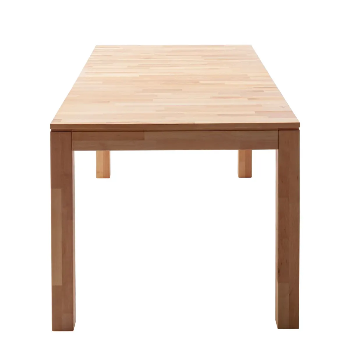 Das 4-Fußgestell sorgt für Stabilität und unterstreicht den konventionellen Stil des Tisches. Die gerade Kante der Platte verleiht ihm eine klare und zeitlose Linienführung, die in jedem Raum gut zur Geltung kommt. Gefertigt aus hochwertiger Kernbuche, verspricht dieser Tisch Langlebigkeit und Robustheit.
