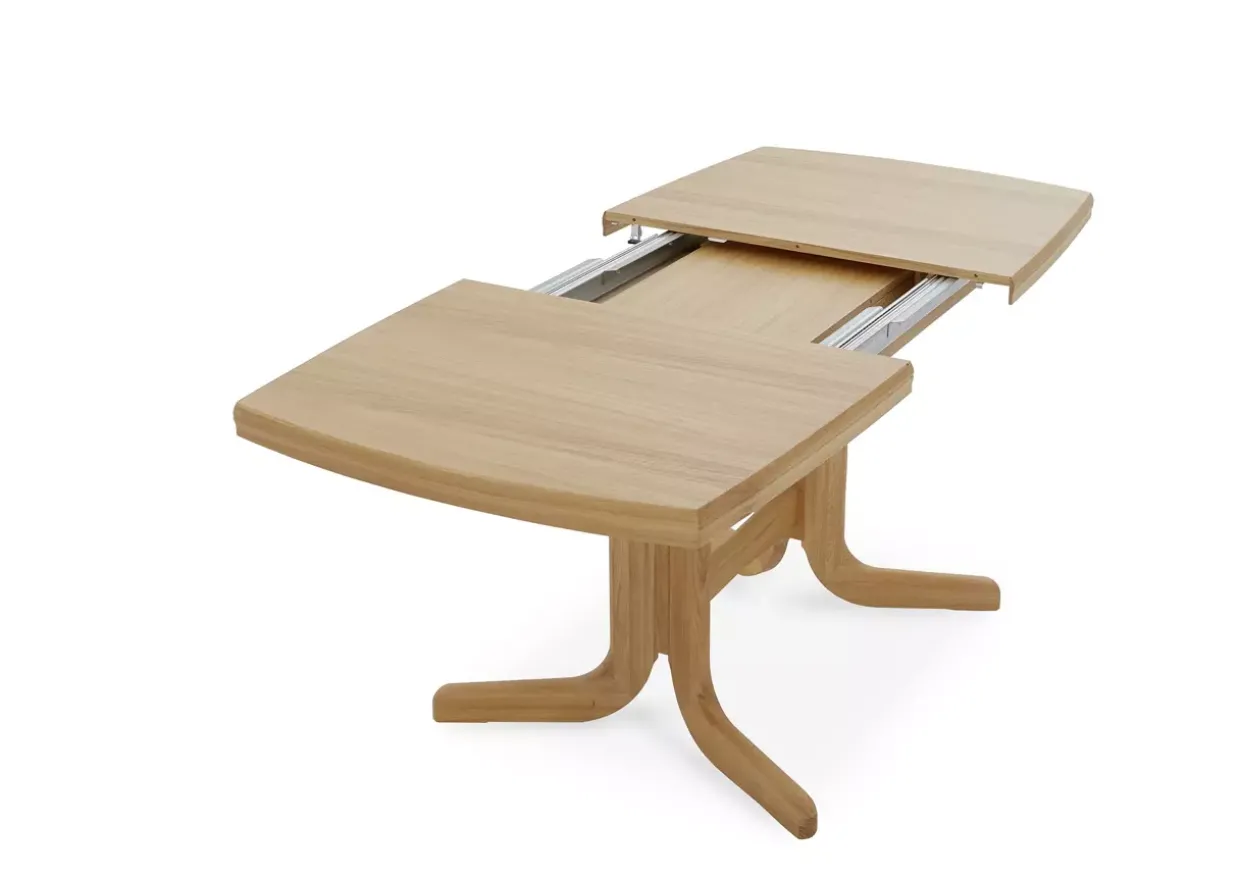 Ein Ausziehtisch, der in natürlicher Eiche erstrahlt, verleiht jedem Raum eine warme und einladende Atmosphäre. Die Verwendung von hochwertigem Eichenholz sorgt für Langlebigkeit und Stabilität, während die natürliche Maserung dem Tisch eine einzigartige Optik verleiht. Der Senator ist mehr als nur ein Möbelstück; er ist ein Ausdruck von Stil und Funktionalität.Das Highlight dieses Tisches ist das Hydro-UV Hartwachs Öl Finish, das nicht nur die natürliche Schönheit des Holzes betont, sondern es auch vor alltäglichen Gebrauchsspuren schützt. Diese spezielle Oberflächenbehandlung bietet einen zusätzlichen Schutz, der die Lebensdauer des Tisches verlängert und gleichzeitig seine ansprechende Erscheinung bewahrt.Furnierte Oberflächen bieten eine zusätzliche Ebene der Raffinesse, indem sie den natürlichen Charme des Eichenholzes unterstreichen und gleichzeitig eine glatte und angenehme Haptik bieten. Sie verleihen dem Tisch ein elegantes Finish, das sowohl modern als auch zeitlos wirkt.Für diejenigen, die nach einem stilvollen und praktischen Möbelstück suchen, ist dieser Ausziehtisch eine hervorragende Wahl. Er vereint natürliche Materialien mit hochwertiger Verarbeitung und eignet sich ideal für gesellige Zusammenkünfte oder formelle Anlässe, bei denen Flexibilität und Design gefragt sind.