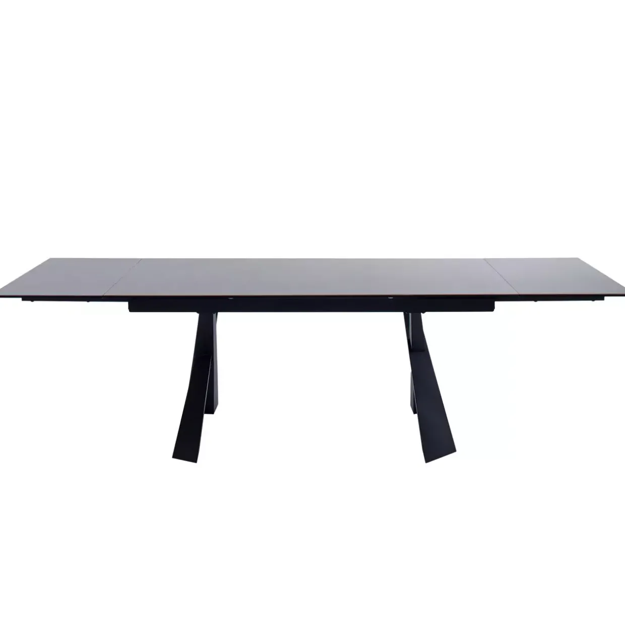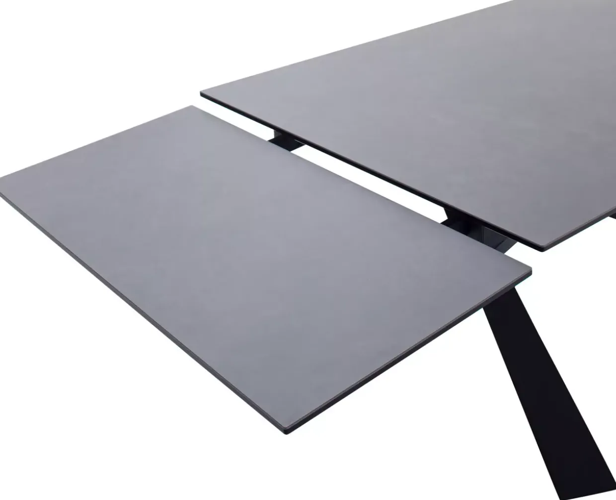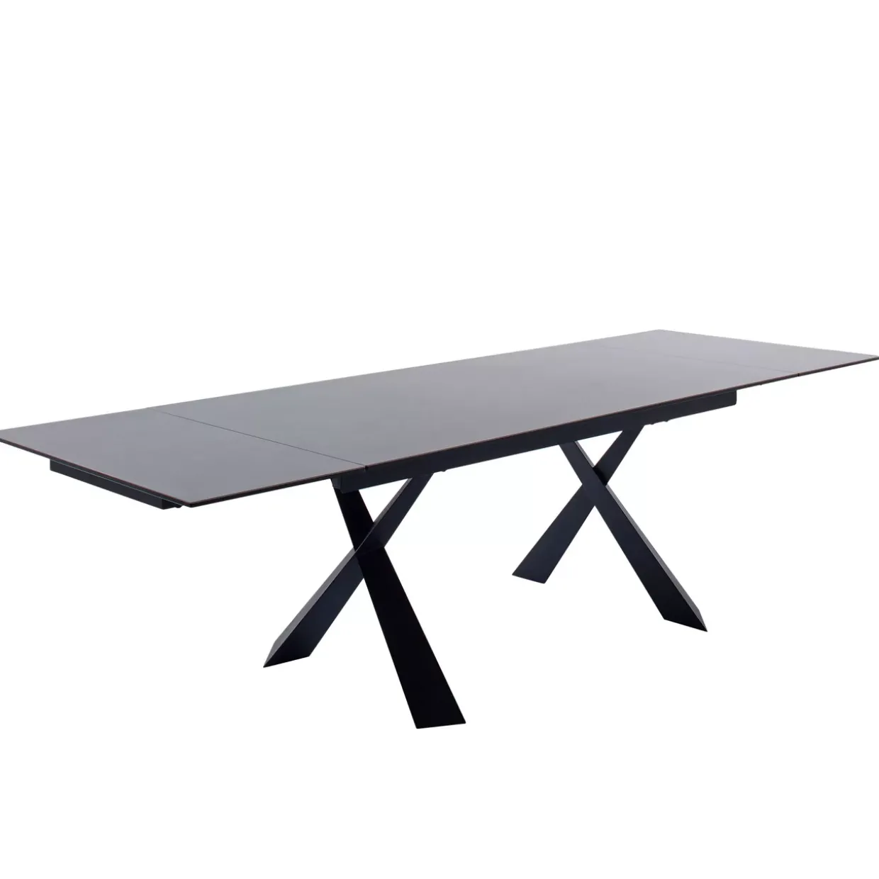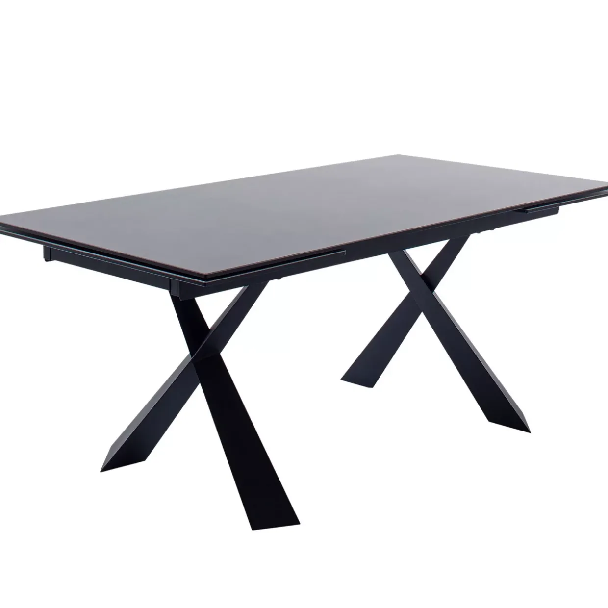 BADESI Auszugtisch 180 (280) cm Exkl. BEGROSEin Hauch von Modernität trifft auf Funktionalität: Der Esstisch in schwarz matt lackiertem und anthrazitfarbenem Design wird zum stilvollen Mittelpunkt Ihres Esszimmers. Die Kombination aus hochwertigem Sicherheitsglas, robustem Metall und eleganter Keramik sorgt nicht nur für Stabilität, sondern auch für eine ansprechende Optik, die sich harmonisch in moderne Wohnkonzepte einfügt.Besonders hervorzuheben ist der praktische Stirnauszug, der es Ihnen ermöglicht, den Tisch bei Bedarf zu erweitern und so flexibel auf unterschiedliche Platzanforderungen zu reagieren. Die ausziehbare Funktion macht diesen Tisch zu einem idealen Begleiter für gesellige Abende mit Freunden oder festliche Anlässe, bei denen Sie mehr Platz benötigen.Das 4-Fußgestell verleiht dem Tisch nicht nur eine stabile Basis, sondern unterstreicht auch die moderne Formensprache. Die klare Linienführung und das Zusammenspiel der Materialien schaffen eine zeitlose Eleganz, die sowohl in großen Räumen als auch in kleineren Essbereichen hervorragend zur Geltung kommt.Ein Esstisch, der nicht nur durch seine ästhetischen Qualitäten überzeugt, sondern auch durch seine praktischen Eigenschaften im Alltag. Dieser Tisch vereint Design und Funktionalität auf höchstem Niveau und bietet Ihnen die Möglichkeit, stilvoll und flexibel zu speisen.