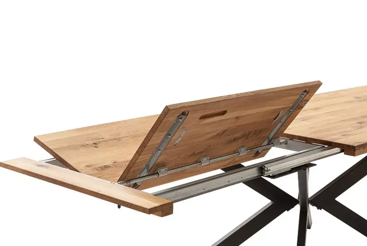 BARLETTA Auszugtisch 180 (280) cmDie authentische Schönheit der Wildeiche trifft auf die robuste Eleganz von Stahl in diesem modernen Esstisch. Mit seiner Kombination aus Holz und Metall verkörpert der Tisch eine zeitlose Ästhetik, die sowohl in klassische als auch in moderne Esszimmerumgebungen passt. Der Esstisch bietet nicht nur optische Vorzüge, sondern überzeugt auch mit seiner Funktionalität: Der praktische Synchronauszug ermöglicht ein müheloses Vergrößern der Tischfläche, sodass Sie jederzeit Platz für zusätzliche Gäste schaffen können.Der Tisch besticht durch eine geölte Oberfläche, die die natürliche Maserung der Wildeiche hervorhebt und für ein warmes und einladendes Ambiente sorgt. Das pulverbeschichtete Stahlgestell verleiht dem Tisch Stabilität und eine moderne Note. Das 4-Fußgestell bietet eine solide Basis und gewährleistet sicheren Stand.Ein weiterer Pluspunkt ist die FSC-Zertifizierung, die Ihnen die Gewissheit gibt, dass das Holz aus nachhaltig bewirtschafteten Wäldern stammt. Diese Eigenschaft macht den Tisch nicht nur zu einem ästhetischen, sondern auch zu einem verantwortungsbewussten Möbelstück. Entdecken Sie die Vielseitigkeit und den natürlichen Charme dieses Auszugtisches und gestalten Sie Ihr Esszimmer zu einem einladenden Treffpunkt für Familie und Freunde.