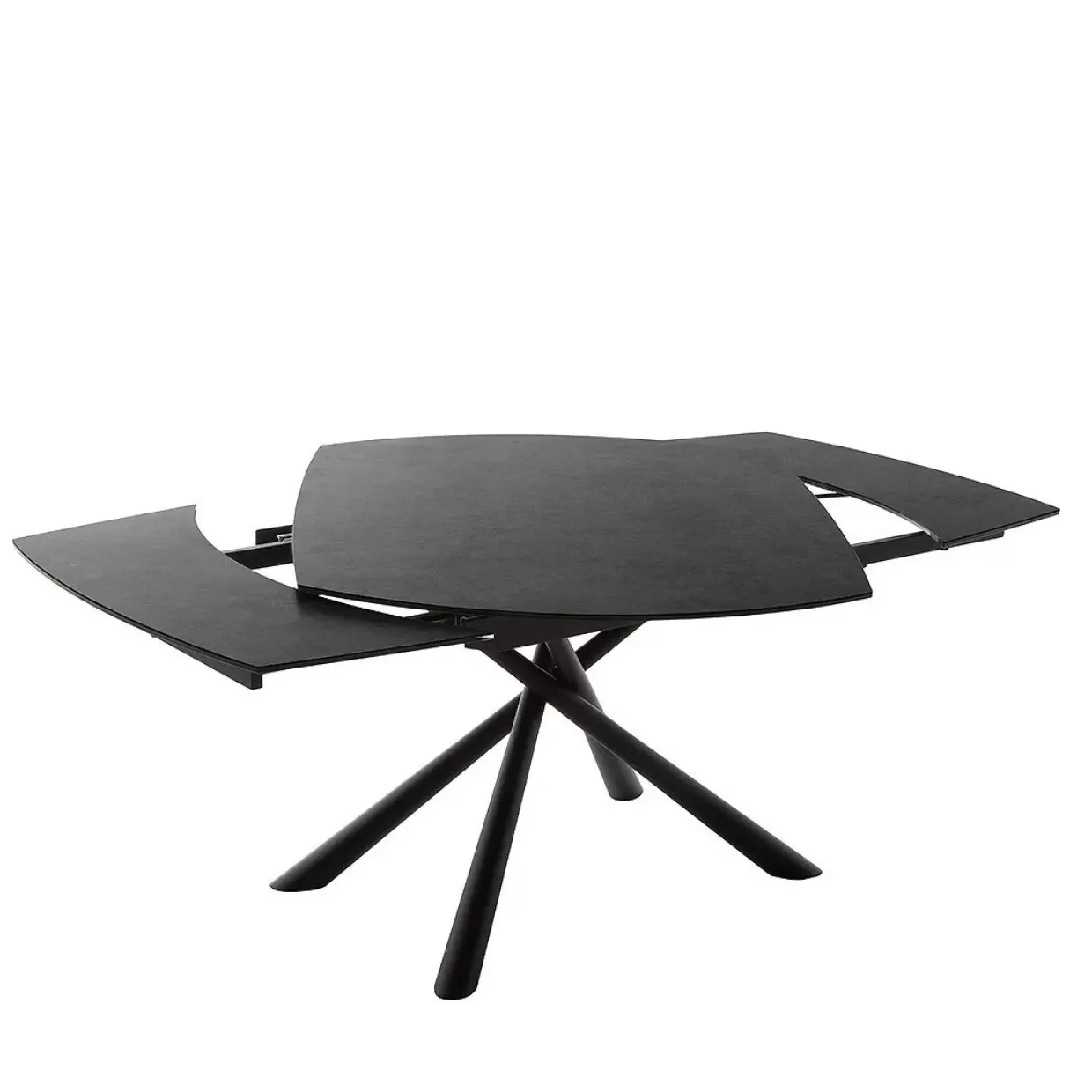 NICOSIA Auszugtisch 130 (190) cmEin moderner Esstisch mit stilvoller Eleganz – der schwarze matt lackierte Look zieht alle Blicke auf sich. Dieser Auszugtisch vereint Funktionalität und zeitloses Design, ideal für zeitgenössische Wohnräume. Hergestellt aus einer hochwertigen Kombination von Metall, Glas und Keramik, bietet er nicht nur ästhetischen Reiz, sondern auch Stabilität und Langlebigkeit.Dank des Synchronauszugs und der Einlegeplatte mit Liftfunktion aus Keramik lässt sich die Tischfläche mühelos erweitern. Dies ermöglicht eine flexible Nutzung, sei es für das gemütliche Abendessen im kleinen Kreis oder für größere Zusammenkünfte. Die Sicherheitsglasplatte sorgt für zusätzliche Robustheit und ein elegantes Erscheinungsbild.Mit seinem 4-Fußgestell bietet der Tisch eine stabile Basis und fügt sich harmonisch in verschiedene Einrichtungsstile ein. Die schwarz lackierte und anthrazitfarbene Variante sorgt für eine dezente, aber dennoch ausdrucksstarke Optik. Dieser Esstisch verkörpert eine gelungene Symbiose aus Funktionalität und modernem Design. Für diejenigen, die Wert auf hochwertige Materialien und durchdachte Details legen, stellt dieser Tisch eine ausgezeichnete Wahl dar – ein Möbelstück, das sowohl optisch als auch funktional überzeugt.