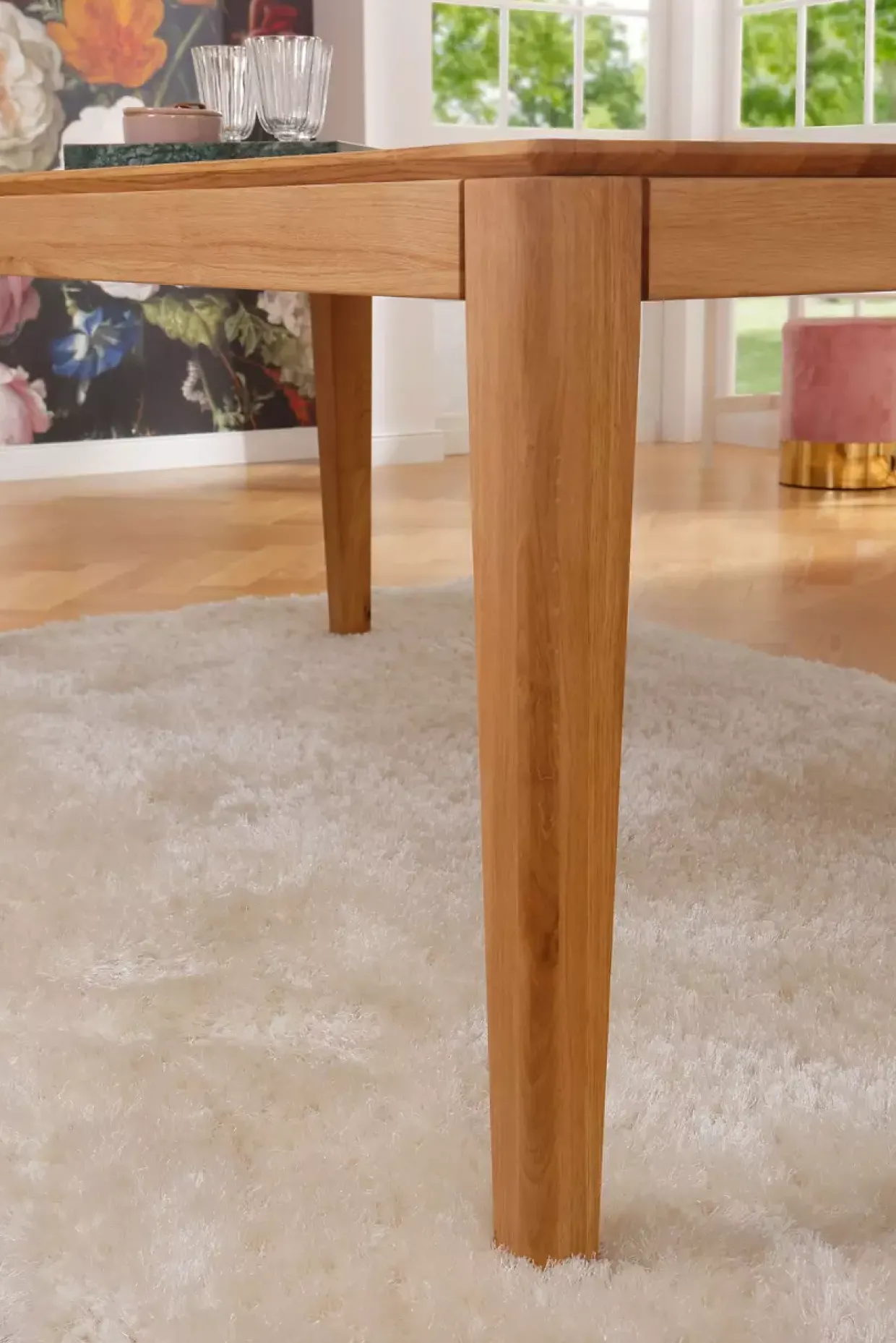 Für all jene, die Flexibilität in ihrem Essbereich schätzen, erweist sich der Auszugtisch als ideale Wahl. Dank der Auszugsfunktion lässt sich der Tisch je nach Bedarf vergrößern und bietet so ausreichend Platz für gesellige Abende mit Familie und Freunden. Robustheit und Langlebigkeit zeichnen das Holz der Wildeiche aus, wodurch dieser Tisch nicht nur ein optisches Highlight, sondern auch ein funktionales Möbelstück darstellt.