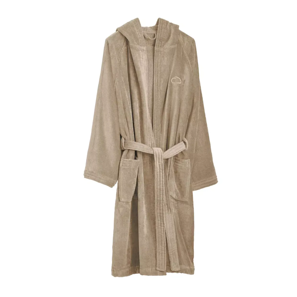 Der moderne Stil dieses Modells passt sich unterschiedlichen Einrichtungsstilen an und verleiht jeder Morgen- oder Abendroutine einen Hauch von Luxus. Taupe als Farbwahl ist dezent und zeitlos, wodurch der Bademantel zu einem langlebigen Begleiter wird.