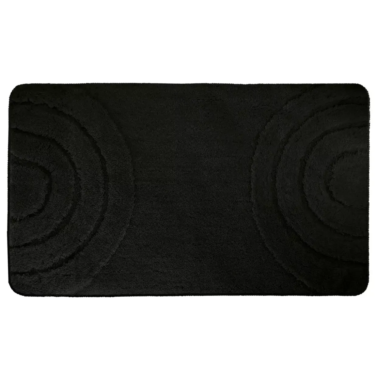 Tauchen Sie ein in den Komfort des modernen Badteppichs „Bow“. Der zeitlose Stil in Schwarz lässt Ihre Badezimmereinrichtung in neuem Glanz erstrahlen. Gefertigt aus hochwertiger Synthetikfaser, bietet dieser Badteppich eine angenehme Haptik und Langlebigkeit. Die kunstvollen Kreise verleihen Ihrem Raum einen Hauch von Eleganz und schaffen eine entspannte Atmosphäre.