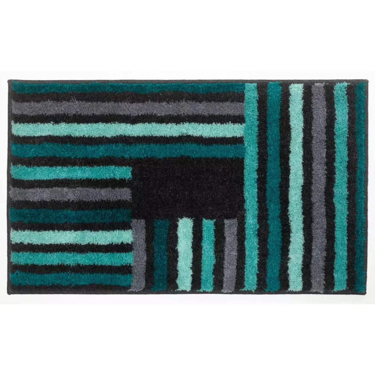 Das geometrische Muster verleiht dem Teppich eine zeitgemäße Note, die das Auge erfreut. Dank seiner bruchfesten und rutschfesten Eigenschaften bietet er Sicherheit und Komfort in Ihrem täglichen Gebrauch. Besonders geeignet ist dieser Badteppich für Räume mit Fußbodenheizung, da er speziell dafür konzipiert wurde.