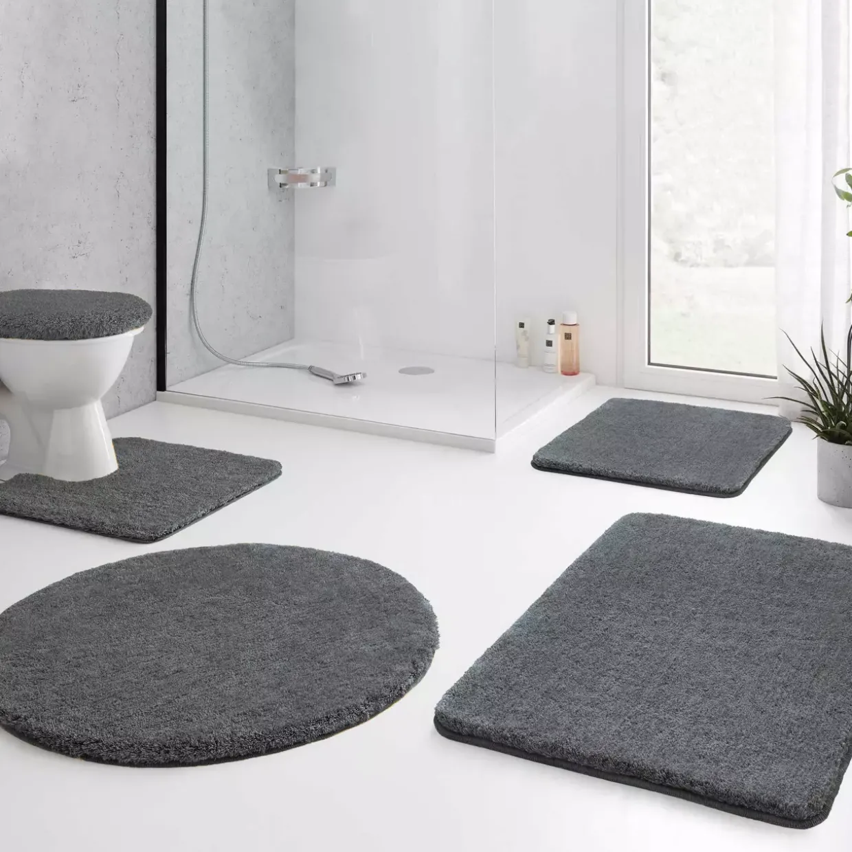 Mit seinem modernen Stil wird der Badteppich Modell Relax zum Blickfang in jedem Badezimmer. Der Badteppich in Anthrazit verleiht Ihrem Raum eine elegante und zeitlose Atmosphäre. Dank der melierten Oberfläche zieht er die Blicke an und bringt eine interessante Textur in Ihr Zuhause.