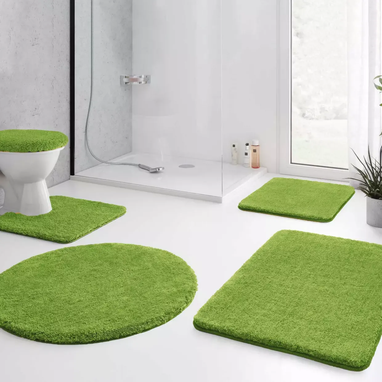 Ein Badteppich, der durch seine Textur besticht, vereint Komfort und Stil auf harmonische Weise. Der moderne Stil passt sich nahtlos in unterschiedliche Badezimmereinrichtungen ein, während die Farbe Kiwigrün frische Akzente setzt.