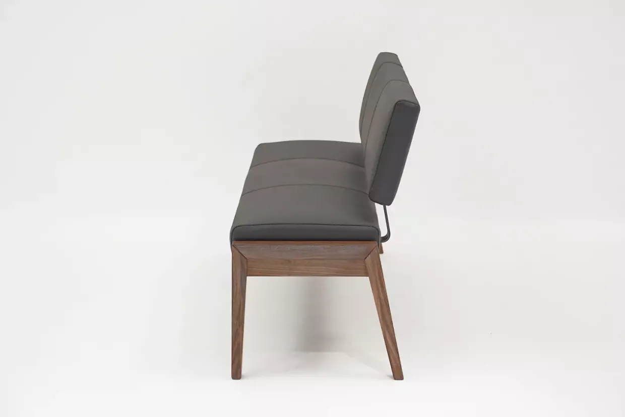 Modernität trifft auf zeitlose Eleganz: Die Mensa Lea Bank vereint stilvolles Design mit hochwertigen Materialien. Eine harmonische Kombination aus schwarzem Leder und edlem Nussbaumholz prägt das Erscheinungsbild dieses Möbelstücks. Mit einem klaren, minimalistischen Stil fügt sich die Bank nahtlos in moderne Wohn- und Essbereiche ein.