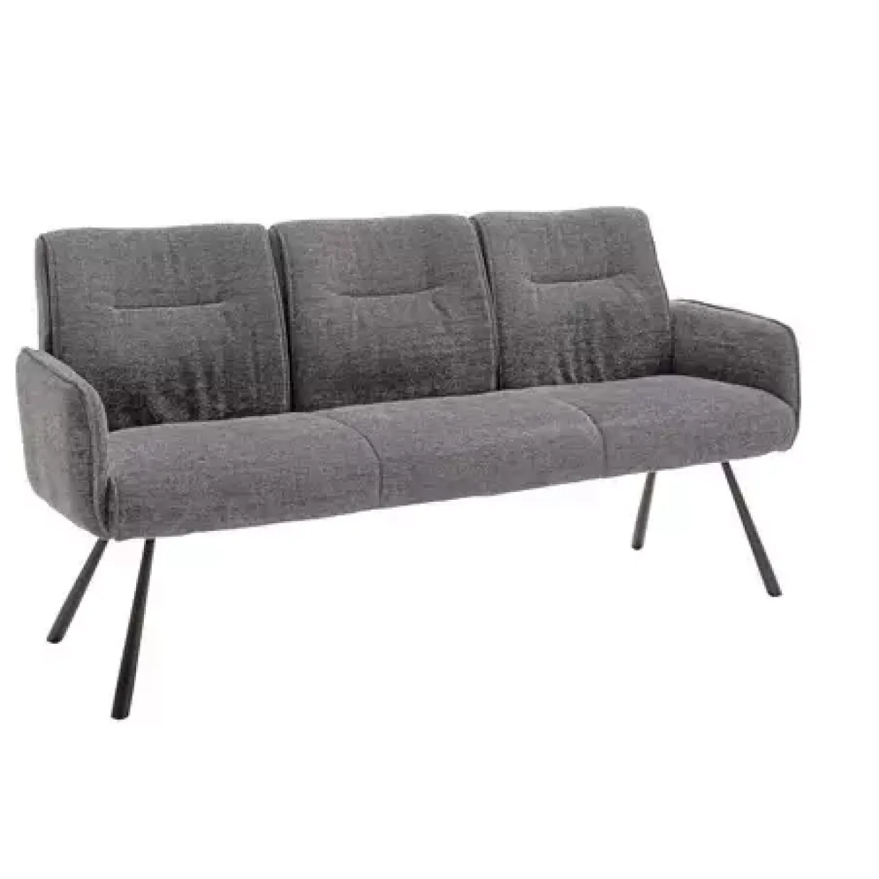 In einem edlen Strukturgewebe präsentiert sich die Bank Delane und vereint stilvolle Eleganz mit praktischer Funktionalität. Das anthrazitfarbene Modell mit einem schwarz matten Gestell besticht durch seine konventionelle Gestaltung und fügt sich harmonisch in jede Wohnlandschaft ein. Die Bank steht auf einem stabilen 4-Fußgestell aus Metall, dessen runde, konische Form eine besondere visuelle Leichtigkeit verleiht.Der Luxus Komfortsitz mit Taschenfederkernpolsterung sorgt für ein außergewöhnliches Sitzerlebnis. Dank der hochwertigen Polsterung bleibt der Sitzkomfort auch bei längerem Verweilen erhalten. Der verwendete Polyesterstoff ist nicht nur strapazierfähig, sondern auch pflegeleicht, was die Bank zu einem praktischen Begleiter im Alltag macht.Ein weiteres Highlight ist der bewegliche Rücken, der zusätzliche Flexibilität und Komfort bietet. Diese Funktion ermöglicht es Ihnen, Ihre Sitzposition individuell anzupassen und so stets bequem zu sitzen. Die Armlehnen der Bank runden das durchdachte Design ab und bieten zusätzliche Entspannung.Die Kombination aus Stoff und Metall verleiht der Bank Delane eine zeitlose Ästhetik, die sowohl in modernen als auch in klassischen Interieurs einen Platz findet. Diese Bank ist nicht nur ein Möbelstück, sondern ein Ausdruck von Stil und Komfort.