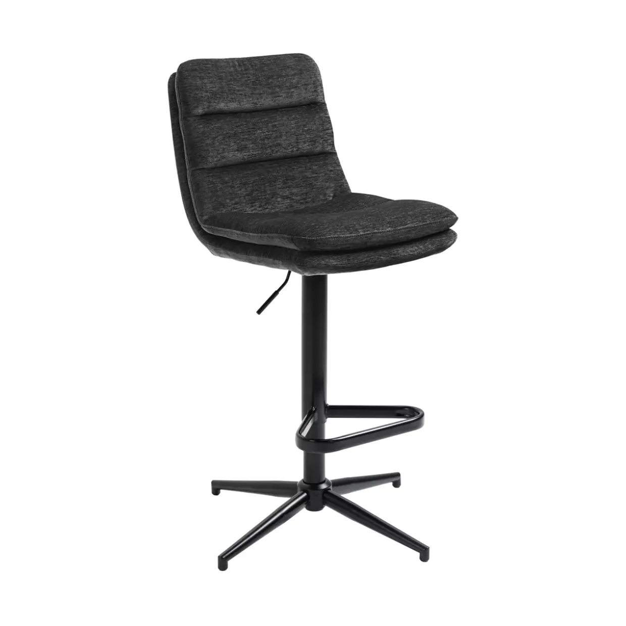 Höhenverstellbar und flexibel – der moderne Barstuhl Cole vereint Komfort mit zeitgemäßem Design. In einem eleganten Zusammenspiel aus Stoff und Metall gefertigt, passt er perfekt in moderne Einrichtungsstile. Die Farbgebung in Boston Anthrazit und Schwarz verleiht dem Stuhl eine edle Note und fügt sich nahtlos in unterschiedliche Raumkonzepte ein.