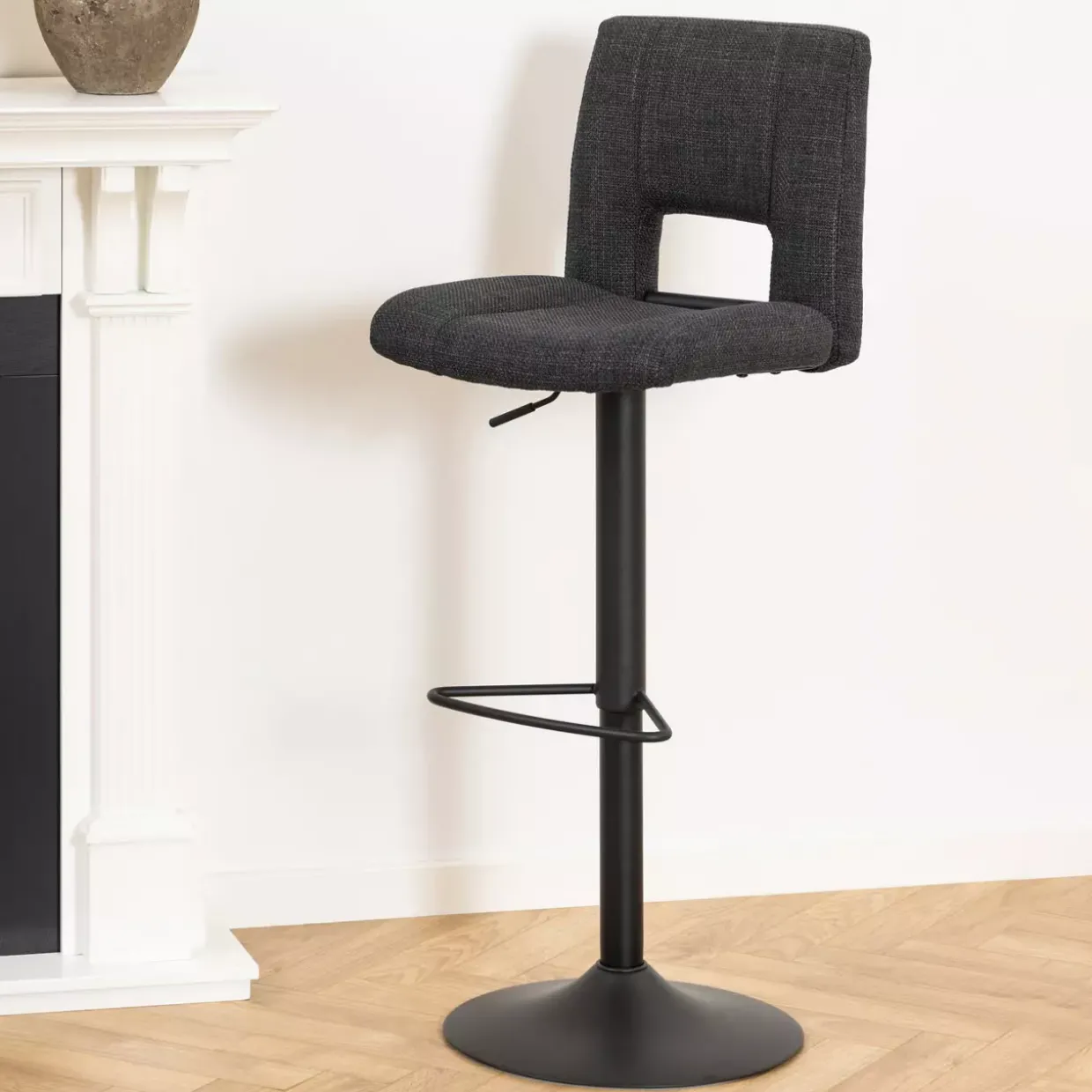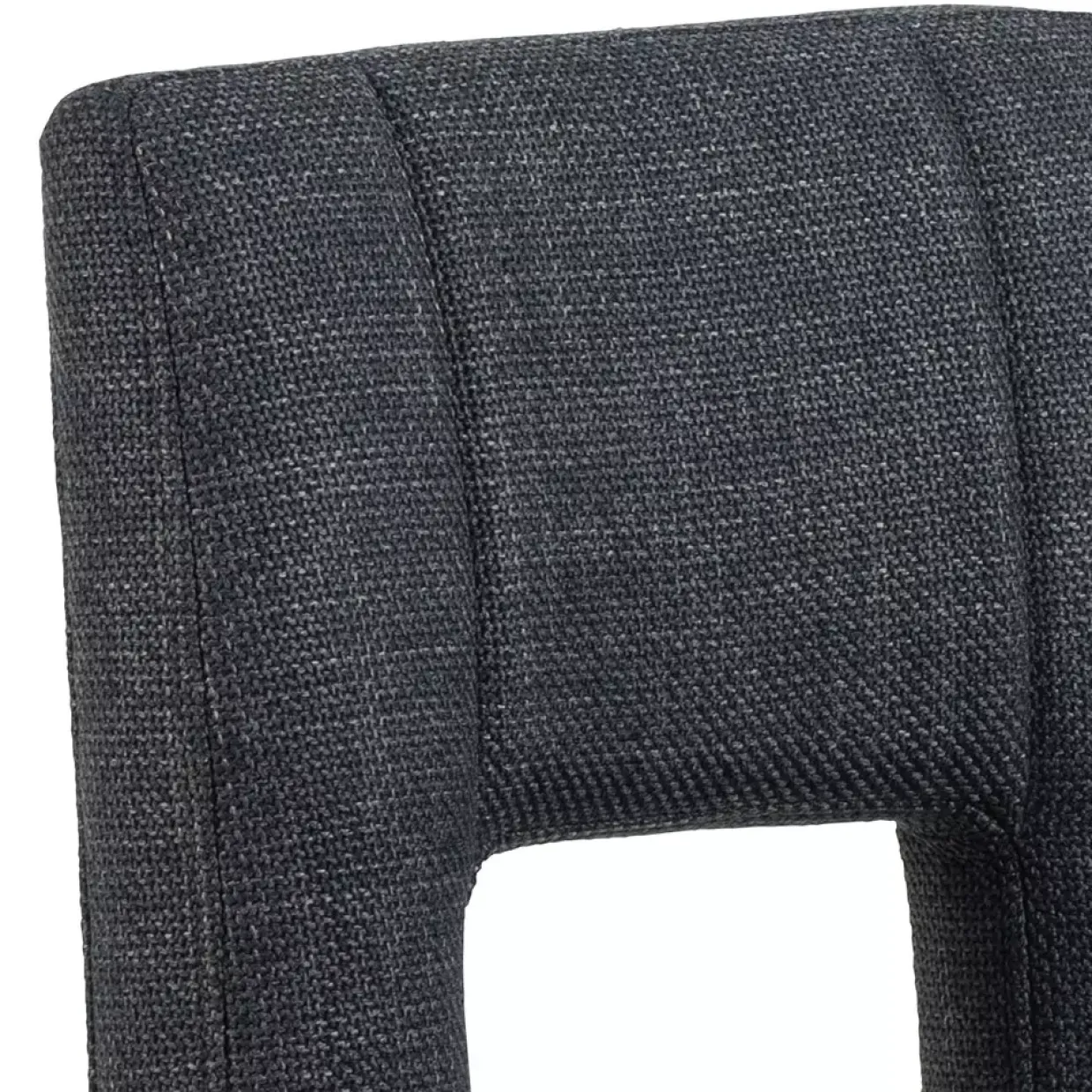 Der Barstuhl Sylvia vereint zeitloses skandinavisches Design mit funktionalen Details. Dunkelgraue und schwarz matt raue Farbtöne verleihen ihm eine elegante Note, die sich nahtlos in moderne Wohnräume einfügt. Der Trompetenfuß aus hochwertigem Metall bietet nicht nur Stabilität, sondern unterstreicht auch den minimalistischen Stil.