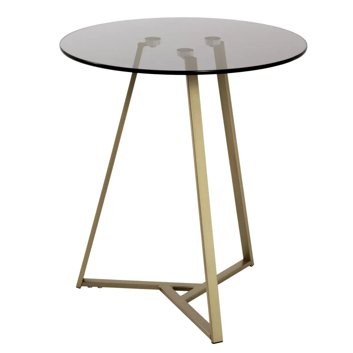 Goldene Eleganz trifft auf graue Raffinesse – der Cindy Beistelltisch beeindruckt durch seine stilvolle Kombination aus edlen Materialien und modernen Farben. Seine Tischplatte aus Glas verleiht dem Möbelstück eine luftige Leichtigkeit, während der stabile Stahlrahmen in Gold und Grau dem Beistelltisch eine robuste und zugleich glamouröse Erscheinung verleiht.