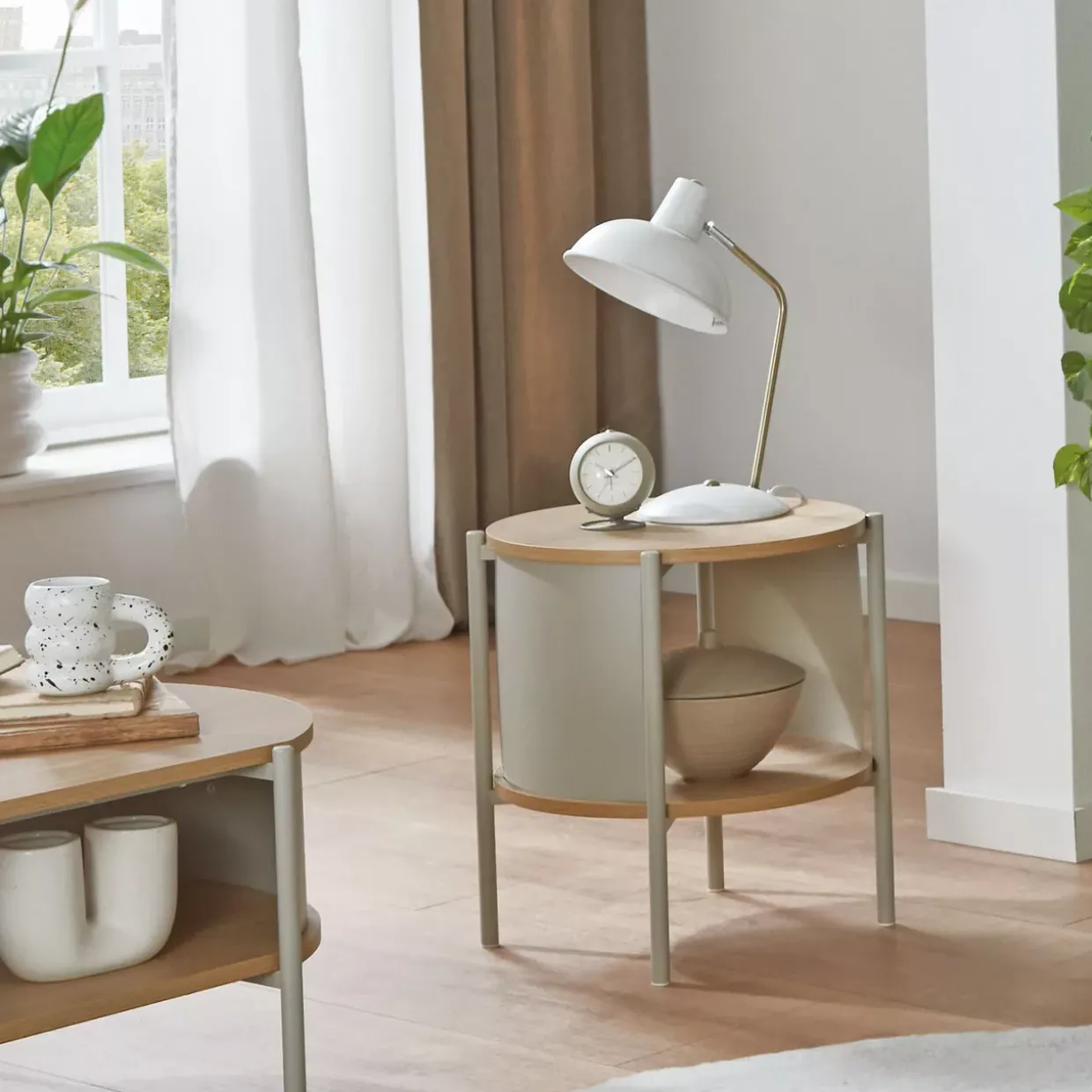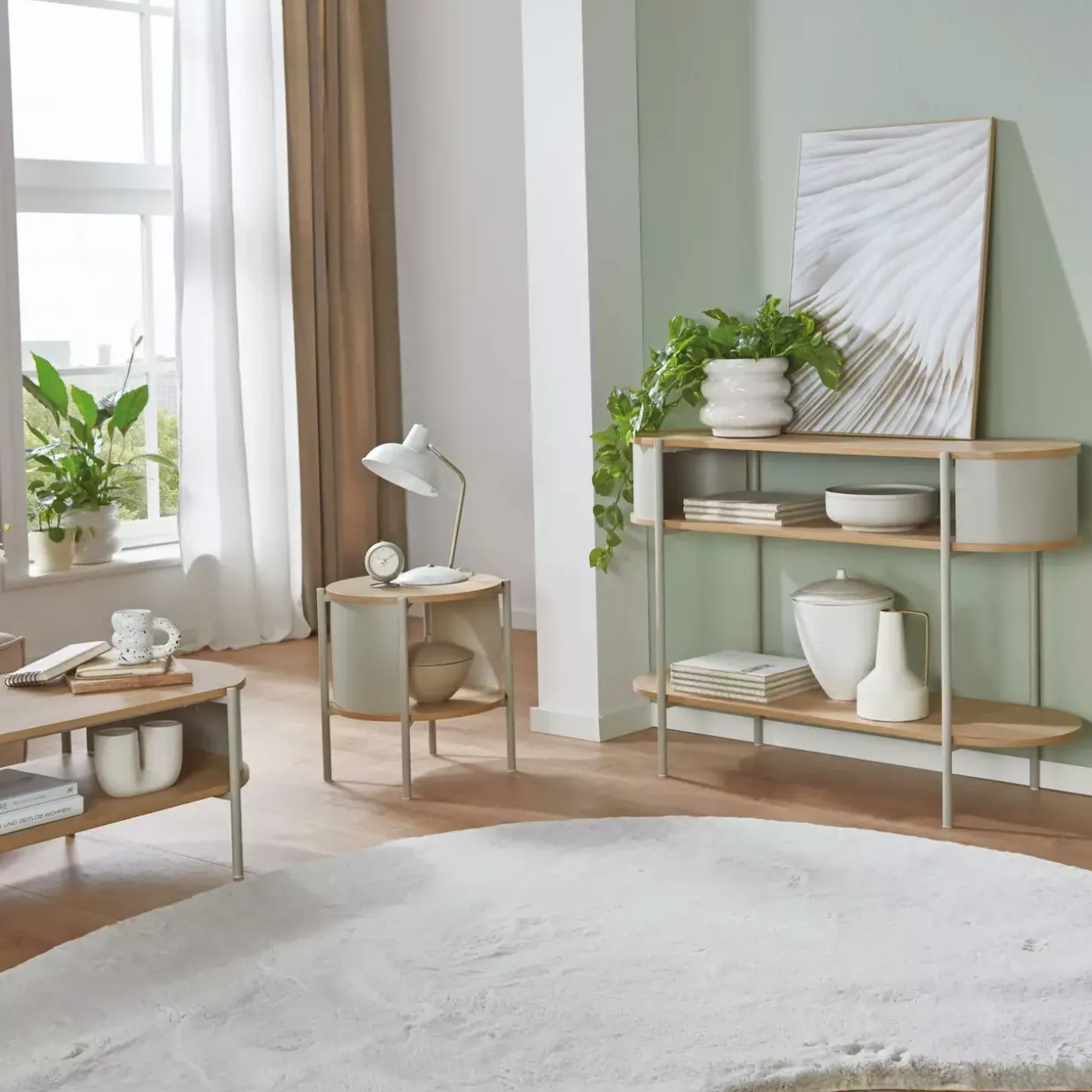 In der Welt des Designs zieht der Beistelltisch im Loft-Stil mit seiner modernen Ästhetik alle Blicke auf sich. Die harmonische Kombination aus Eiche und Kaschmirgrau verleiht ihm eine warme und gleichzeitig elegante Ausstrahlung. Diese Farbpalette fügt sich nahtlos in verschiedene Wohnkonzepte ein und schafft eine einladende Atmosphäre.