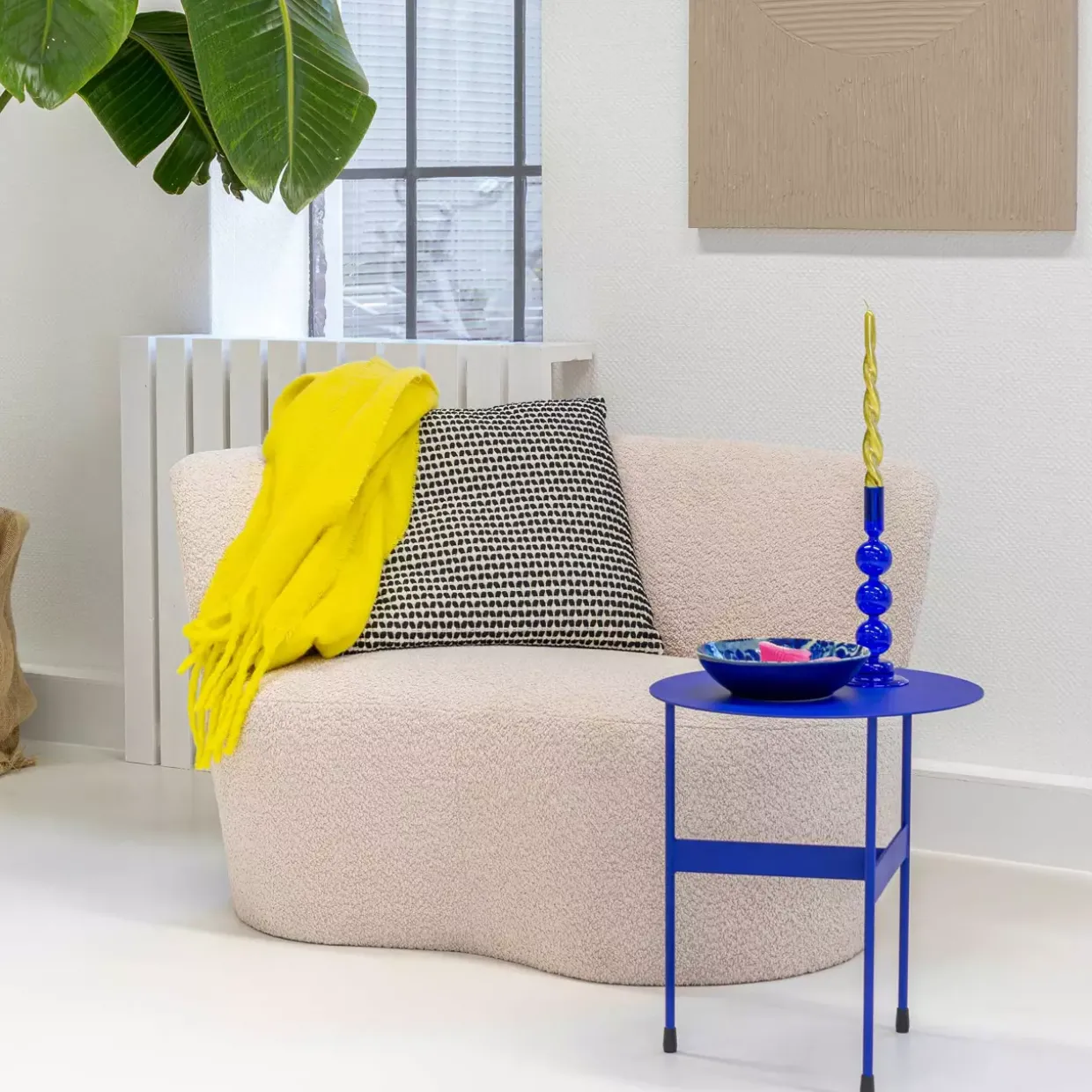 Ultramarin ist die Farbe, die den Mira Beistelltisch in jedem Raum zum Blickfang macht. Mit seinem modernen Stil und der runden Form ergänzt er sowohl minimalistische als auch luxuriöse Einrichtungen. Der Beistelltisch MIRA, gefertigt aus hochwertigem Stahl, überzeugt durch seine Langlebigkeit und Stabilität.