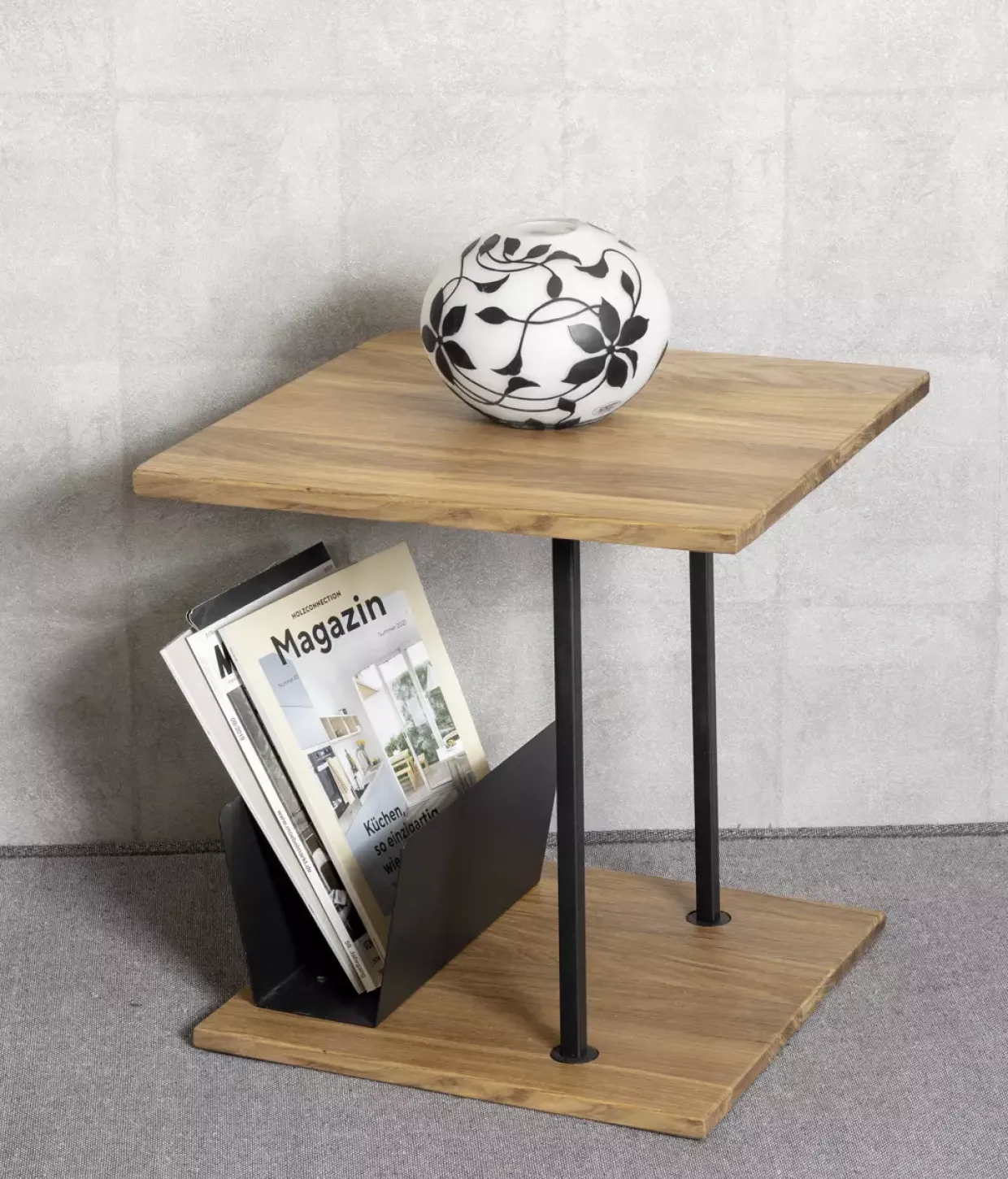 Ein besonderes Highlight ist die integrierte Zeitungsablage, die nicht nur praktisch ist, sondern auch das Gesamtbild des Tisches aufwertet. Ob im Wohnzimmer neben dem Sofa oder im Arbeitszimmer als stilvolle Ergänzung – dieser Beistelltisch passt sich mühelos verschiedenen Wohnbereichen an und bietet zusätzlichen Stauraum für Zeitschriften oder Bücher.