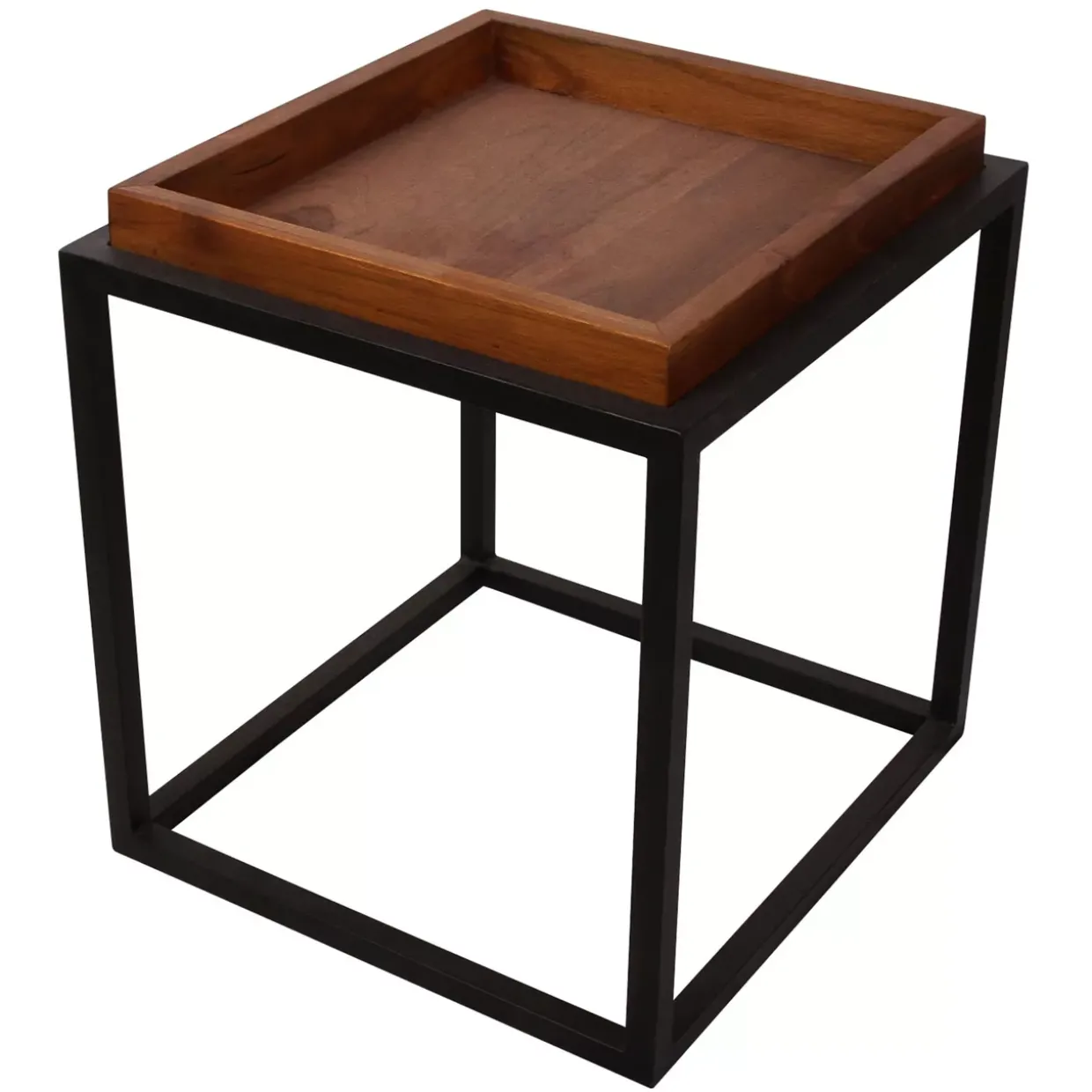 Set 2tlg.; Material: Teakholz + Metall; Ausführung: natur ; Gestell schwarz; Tisch groß: 45 x 45 x 45 cm; Tisch klein: 40 x 40 x 40 cm