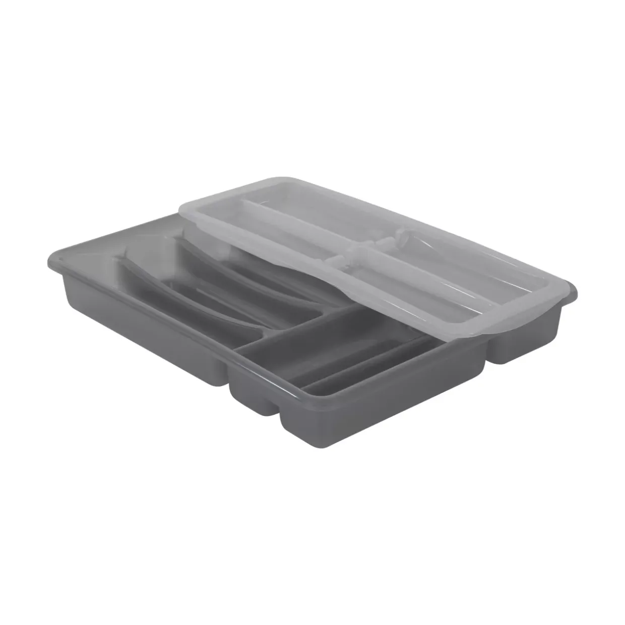 Ein besonderes Merkmal ist das großzügige Universalfach, das ausreichend Platz für Küchenhelfer wie Kochlöffel, Korkenzieher oder Bratgutwender bietet. Dank der robusten Verarbeitung aus Kunststoff ist der Besteckkasten langlebig und pflegeleicht, was ihn zu einem zuverlässigen Begleiter für den täglichen Gebrauch macht.