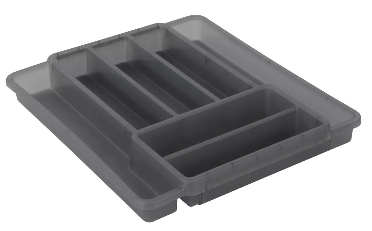 Ganzjährig im Einsatz, bietet die Besteckbox Domino eine durchdachte Lösung für die ordentliche Aufbewahrung von Küchenutensilien. Die Möglichkeit, die Größe der Ablage individuell anzupassen, sorgt für zusätzliche Flexibilität und hilft dabei, den verfügbaren Raum optimal zu nutzen. Ein konventionelles Design in einem ansprechenden Anthrazitton ergänzt die Funktionalität und verleiht jeder Küche einen Hauch von Eleganz.