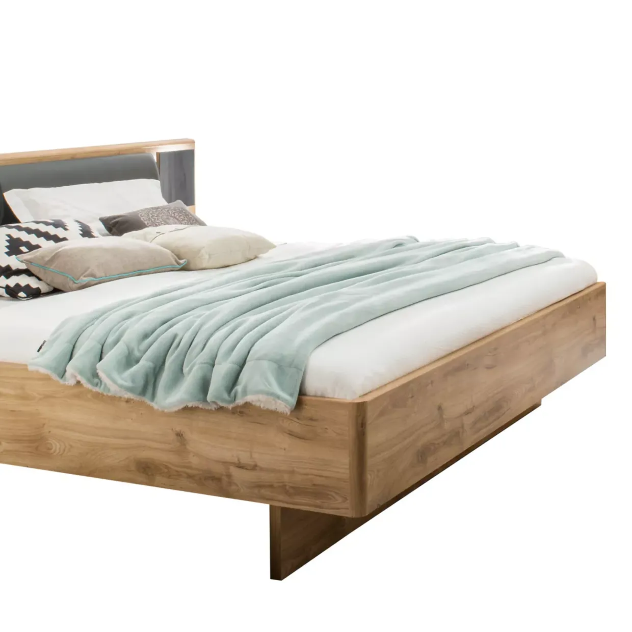 Valencia ist ein modernes Bett, das durch seine Plankeneiche-Nachbildung und die Kombination aus Graphit und grauem Glas eine zeitgemäße Eleganz ausstrahlt. Die harmonische Farbgebung fügt sich nahtlos in unterschiedlichste Einrichtungsstile ein und schafft eine ruhige, entspannte Atmosphäre im Schlafzimmer.