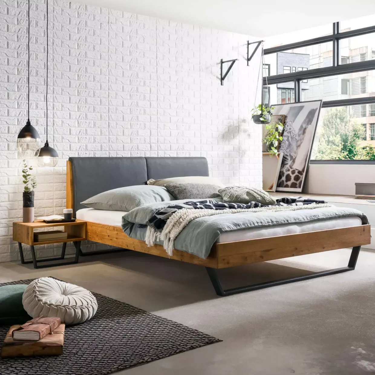 Für Liebhaber des Loft-Stils bietet dieses Bett eine ideale Basis, um mit weiteren Möbelstücken und Dekorationselementen zu experimentieren. Der Materialmix aus Holz, Metall und Textil verleiht dem Raum Tiefe und Charakter. Ein Schlafmöbel, das nicht nur funktional, sondern auch ein ästhetisches Highlight ist.