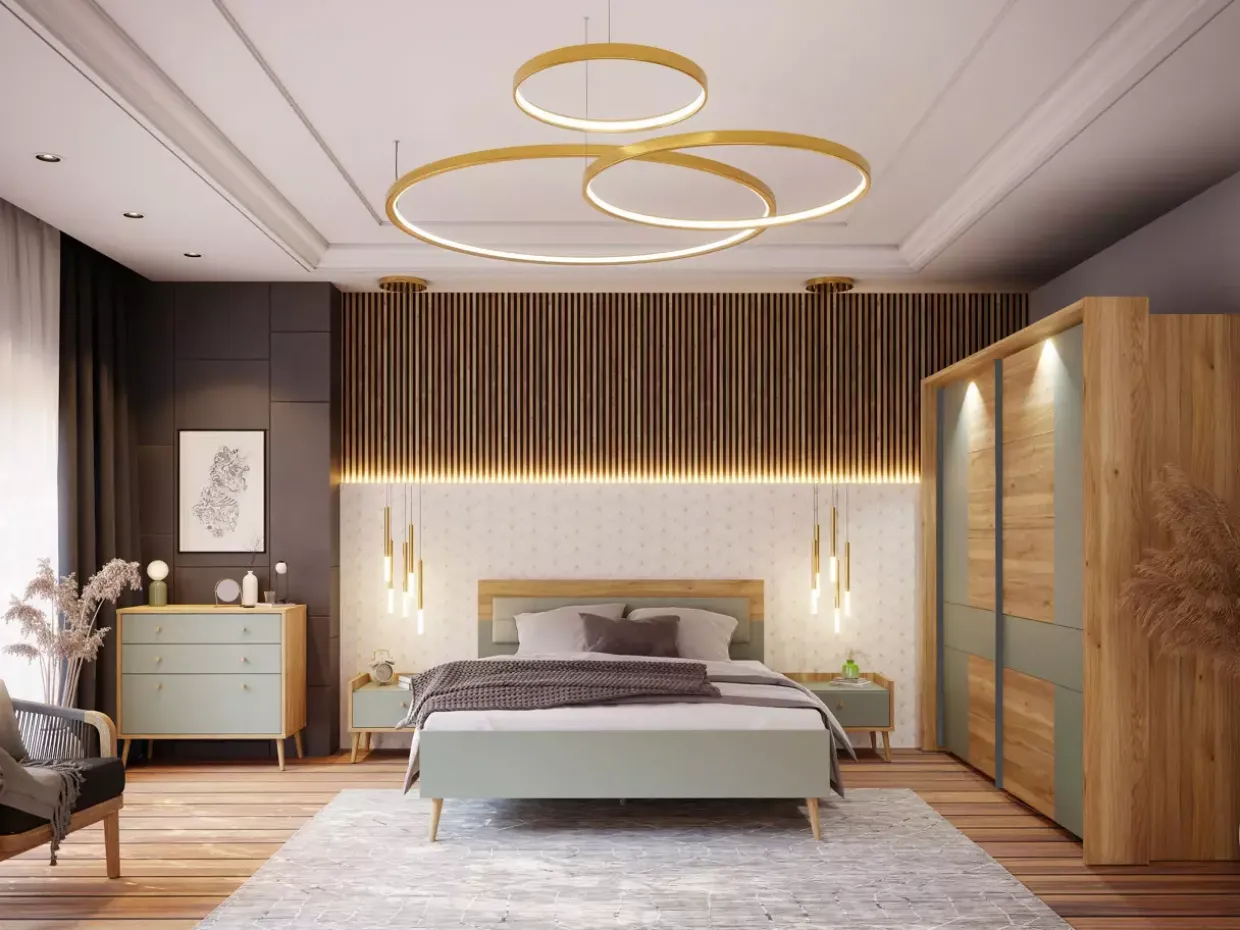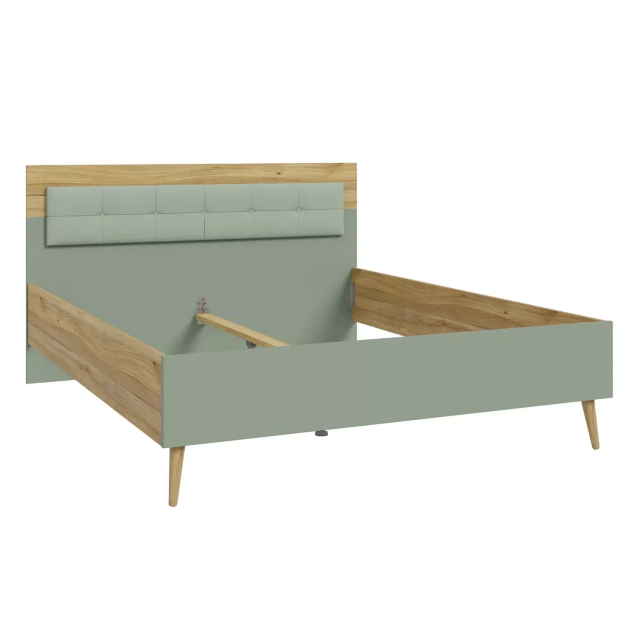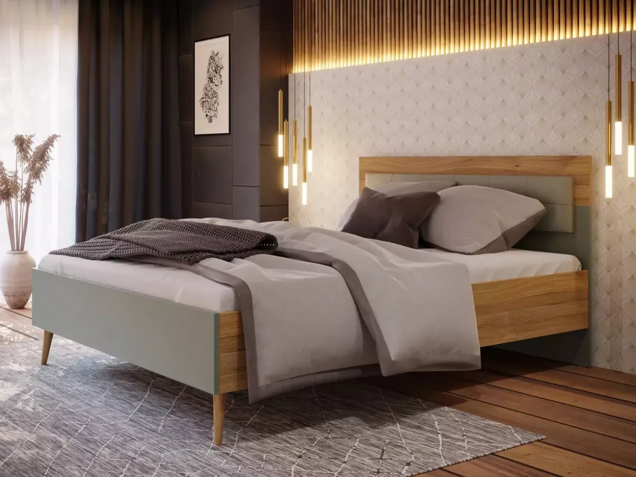 Ein Kopfteil mit Schaumstoffpolsterung bietet nicht nur Komfort, sondern unterstützt auch eine entspannte Atmosphäre im Schlafzimmer. Der stilvolle Bettrahmen Whenua verbindet modernes Design mit funktionalen Eigenschaften und wird zum Highlight in jedem Raum. Mit seiner eleganten Farbkombination aus Salbei Grün und Mauvella Eiche oder Eiche natur fügt er sich harmonisch in unterschiedliche Einrichtungsstile ein.