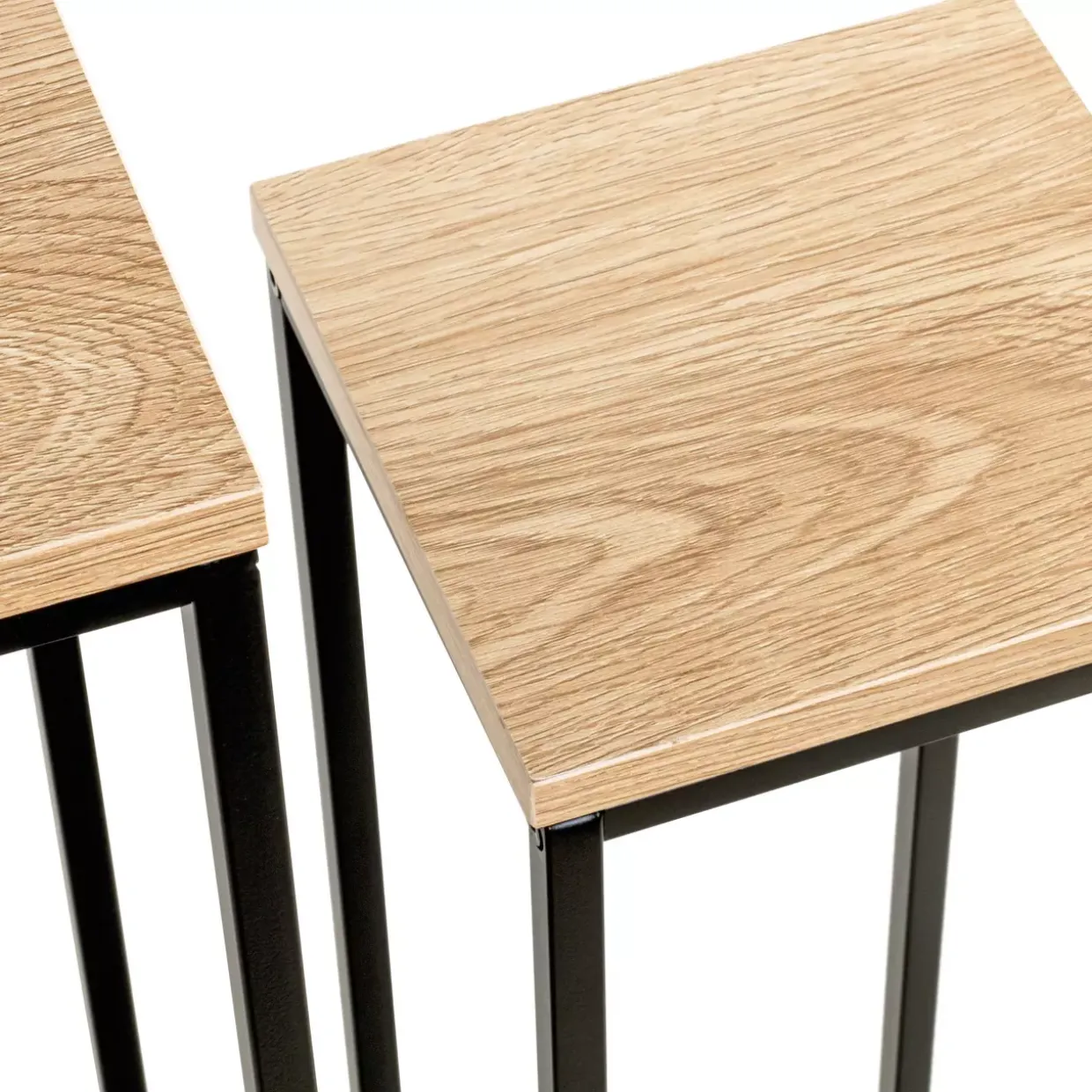 Das Watford Blumensäulen 2er-Set bietet eine elegante und praktische Lösung zur Präsentation Ihrer Pflanzen und Dekorationsobjekte. Dieses Set besteht aus zwei Säulen in unterschiedlichen Größen, die sich perfekt ergänzen und vielseitig in Ihrem Zuhause einsetzen lassen. Jede Säule verfügt über eine Platte aus hochwertigem Eiche-Holzwerkstoff, die durch ihre warme Farbgebung und natürliche Holzoptik überzeugt. Das robuste schwarze Metallgestell verleiht den Säulen eine moderne und industrielle Note, die sich harmonisch in verschiedene Wohnstile einfügt.