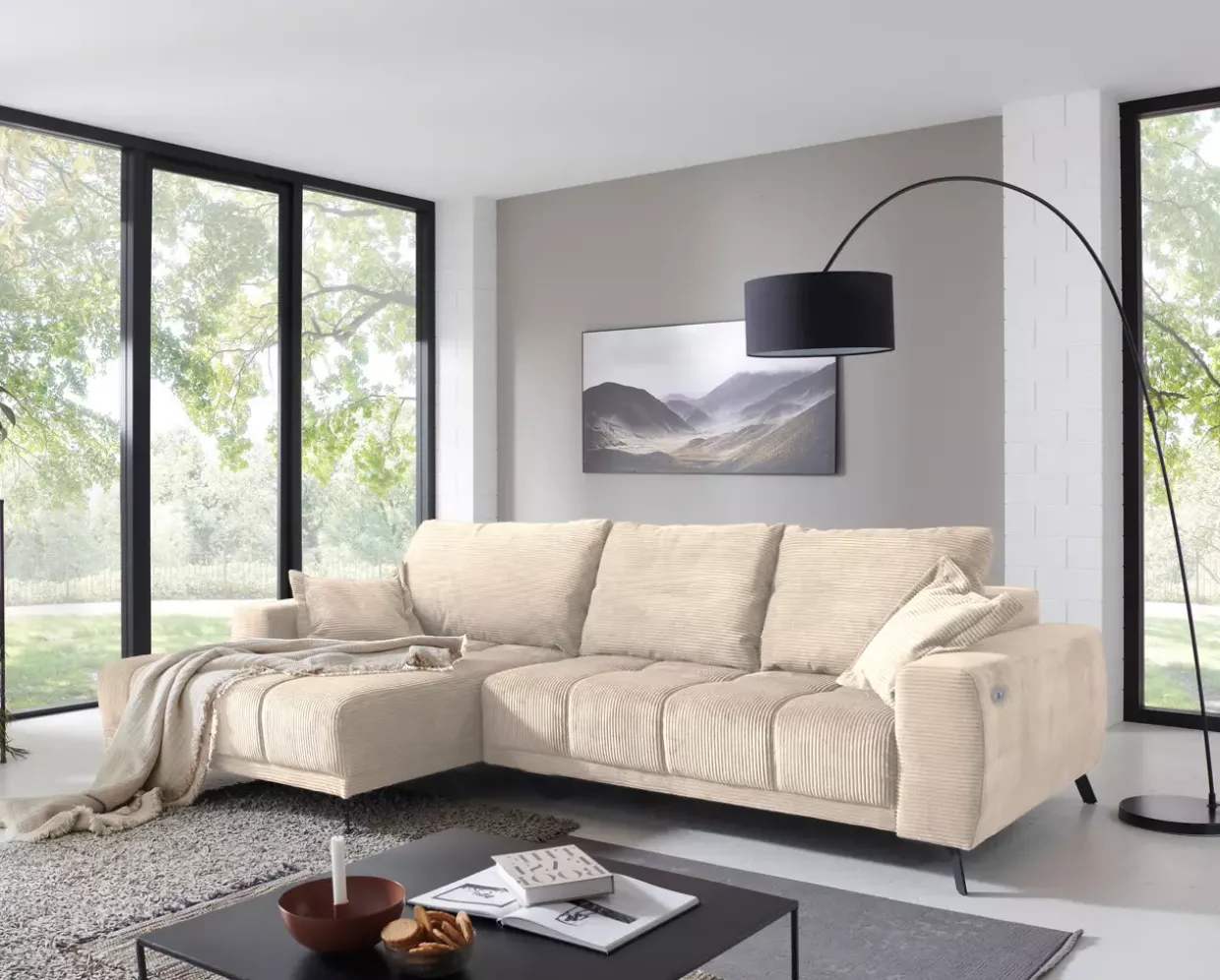 Bonito Polstergarnitur, Ottomane links, Hydra 23 beige